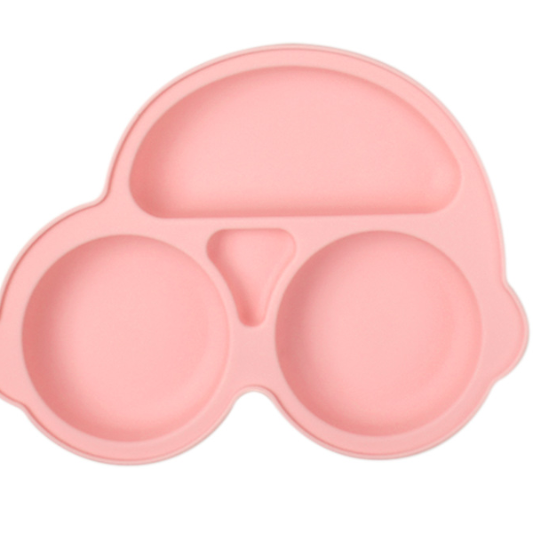 Safe Silicone Dining Plate For Babies: Cartoon Design, Suction Toddler Training Tableware Kids Feeding Bowls Color: Light Pink