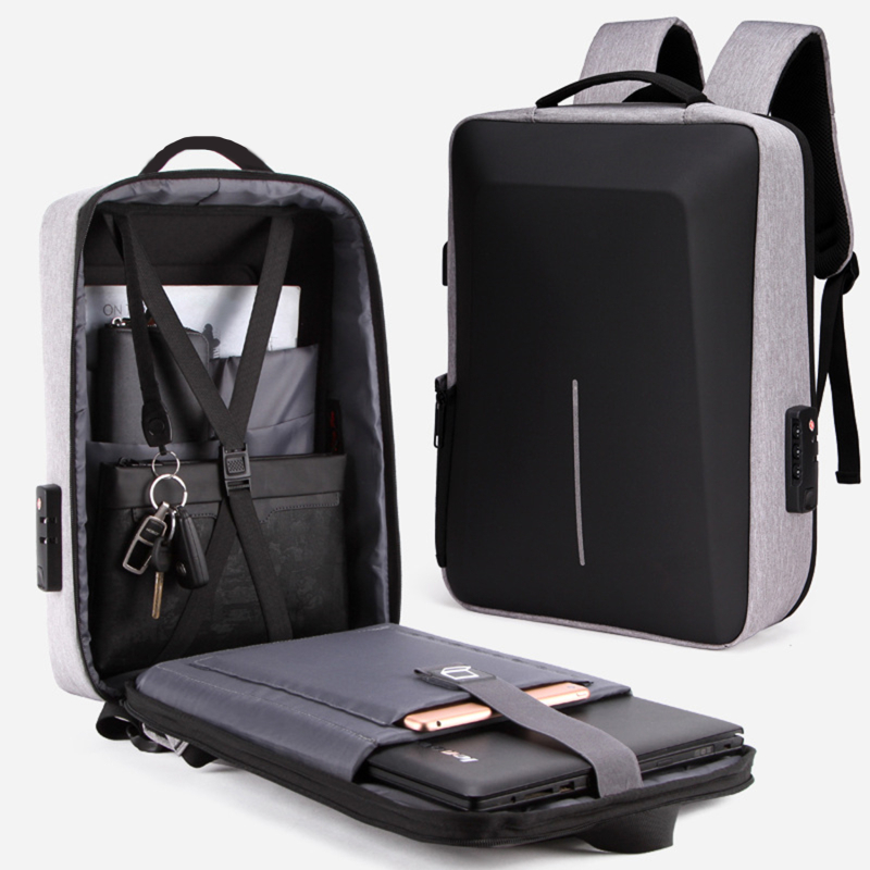 Anti theft Hard Shell Backpack, Men's High Capacity Travel Bag, USB Charging Business Computer Bag black