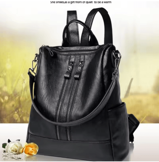 Womens Soft Leather Backpack Korean Style Trendy Casual Multifunctional Bag 2025 Edition black