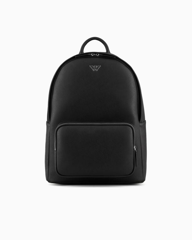Asv Regenerated Saffiano Leather Round Backpack With Eagle Plate - Black - Emporio Armani Backpacks