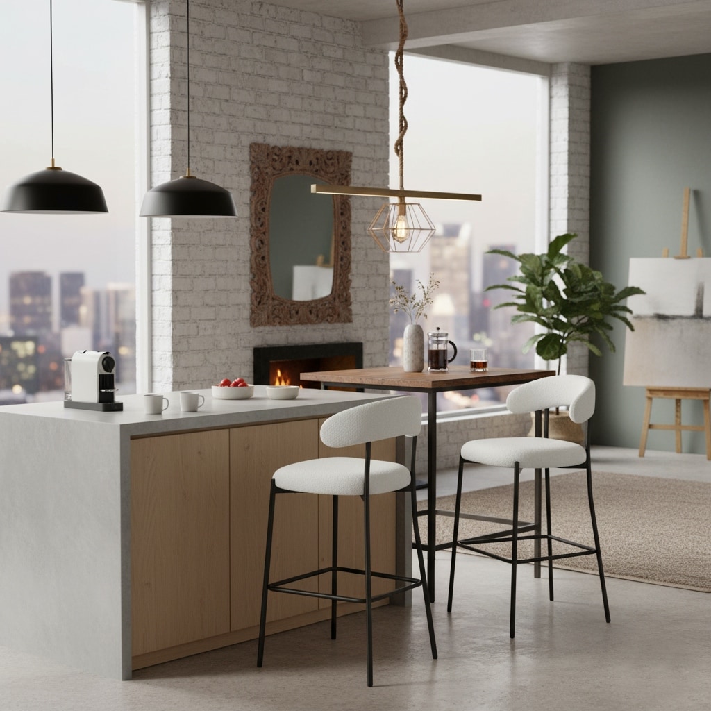 Set of 2 Modern Teddy Bar Stools with Black Metal Frame