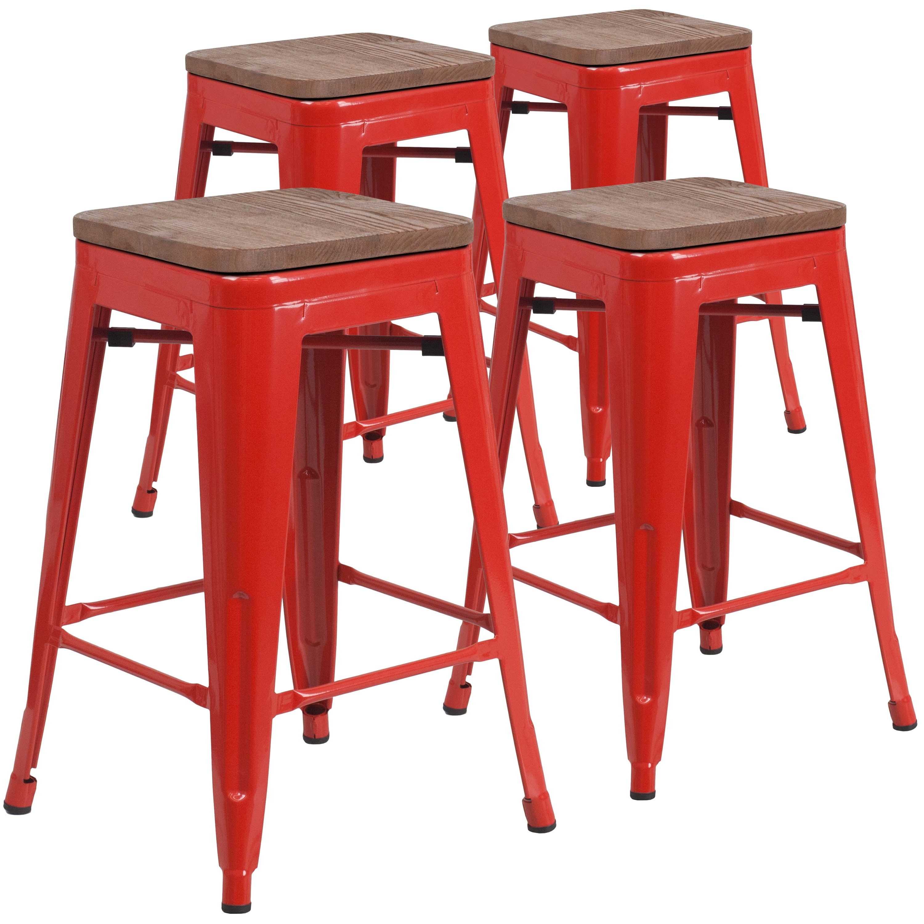 4 Pack 24" High Backless Metal Counter Height Stool with Square Wood Seat