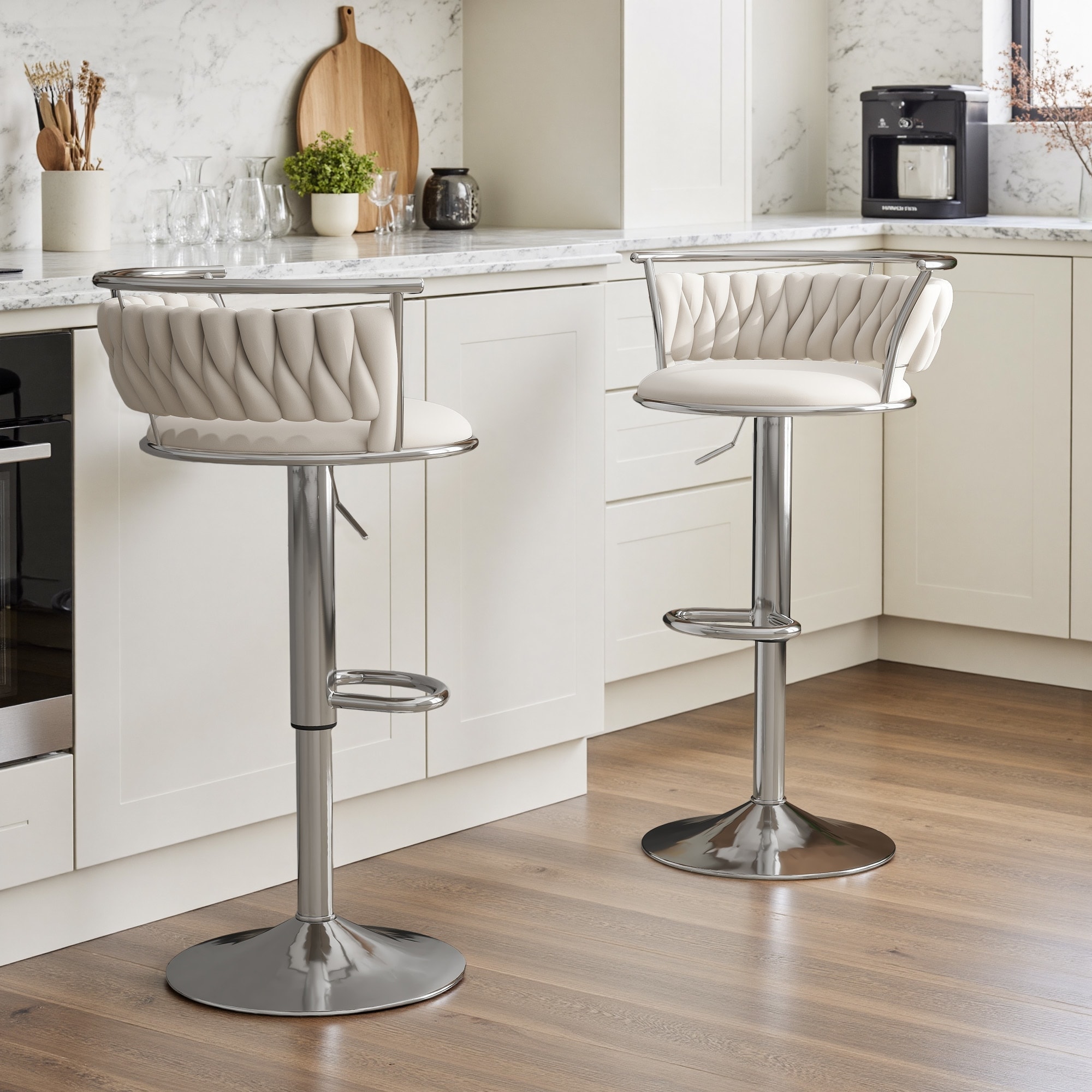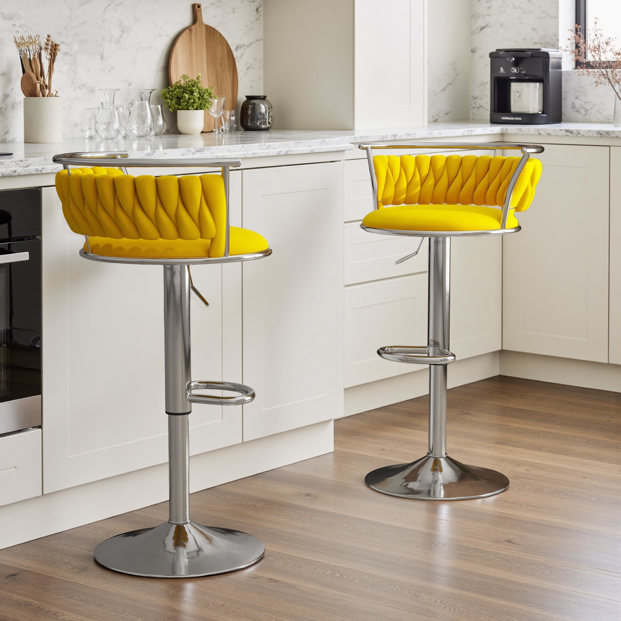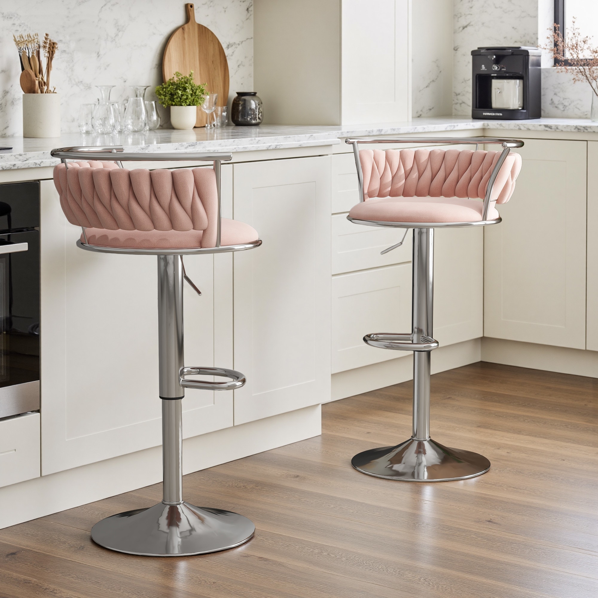 Set of 2 Velvet Adjustable Swivel Bar Stools