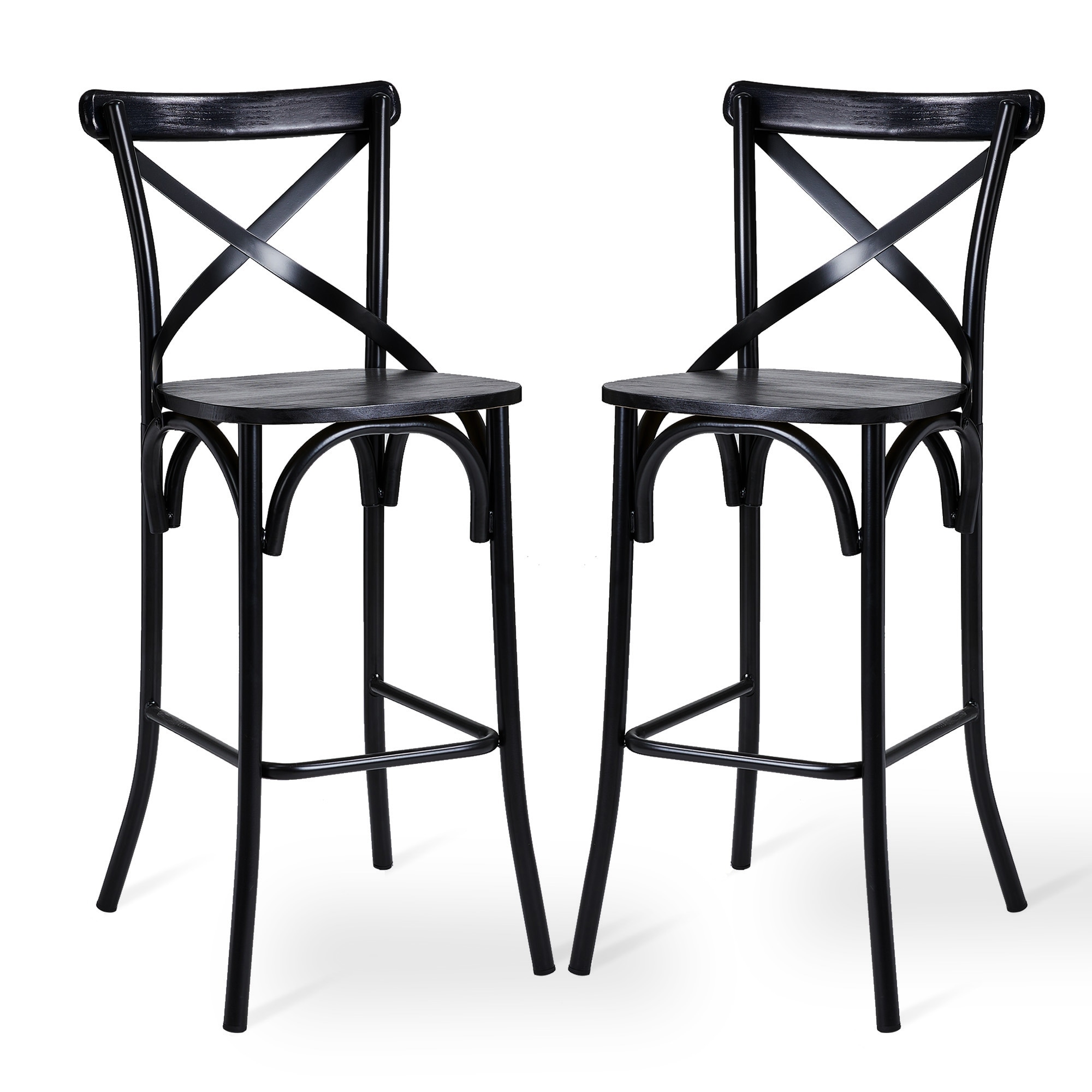 Glitzhome Industrial Metal Solid Elm Wood Seat Kitchen Bar Stool Chairs Set of 4