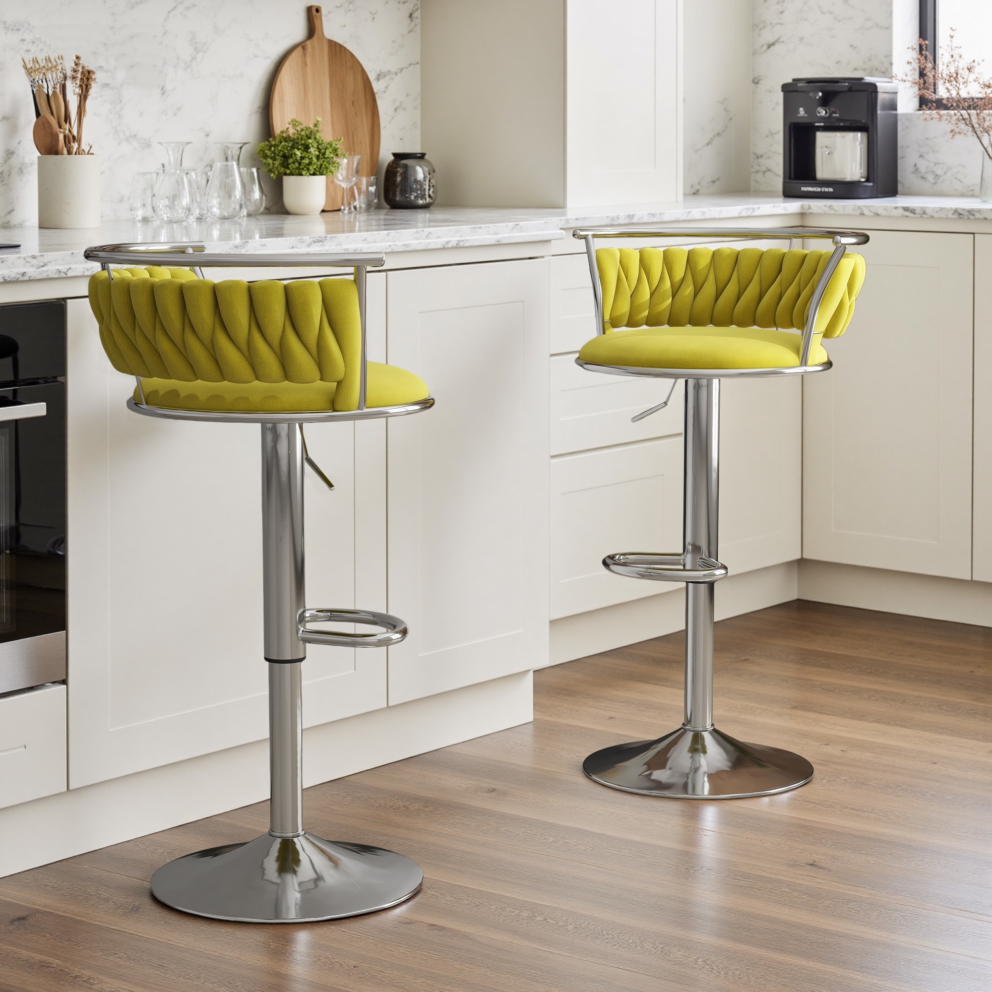 Set of 2 Velvet Adjustable Swivel Bar Stools