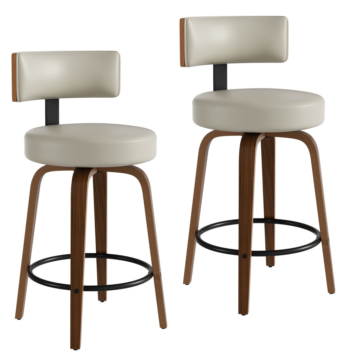 HOMYKA Swivel Bar Height Bar Stools Set of 2, Faux Leather Kitchen Stools Upholstered Barstools with Back