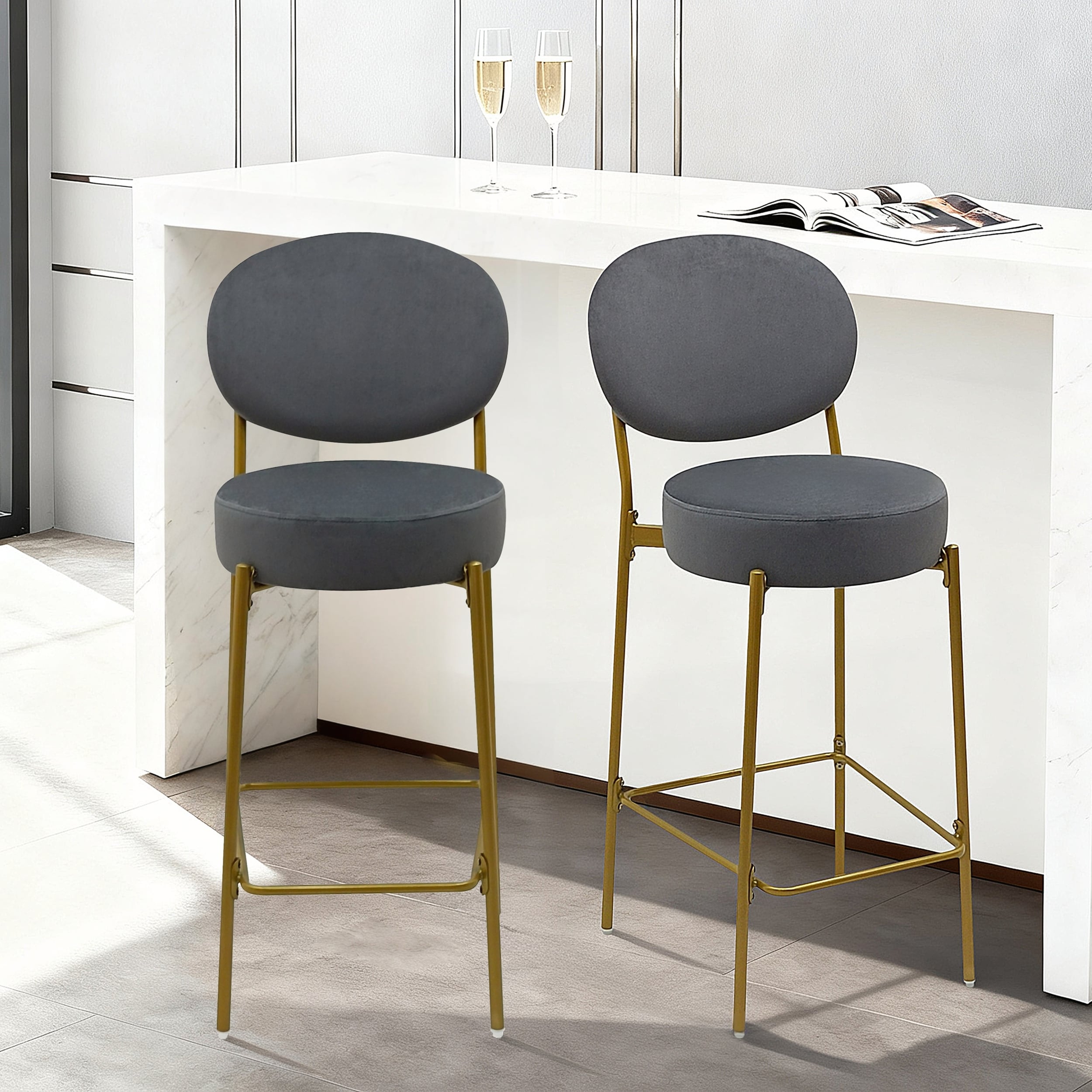 2 Pack Modern Velvet Bar Stools with Gold Metal Legs for Kitchen Island and Home Bar