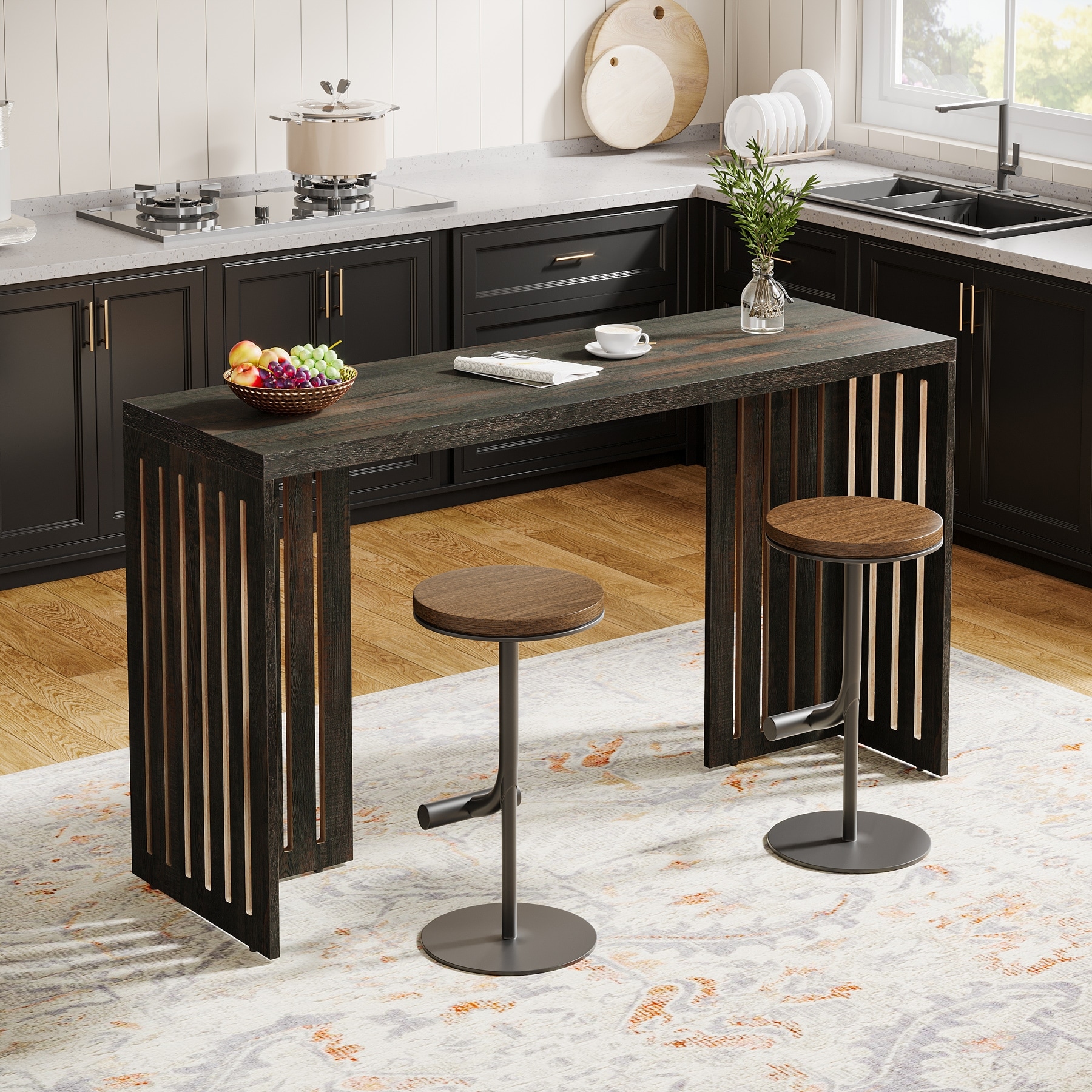 63" Bar Table, Rectangular High Top Kitchen & Dining Table with Louvered Base for Small Spaces