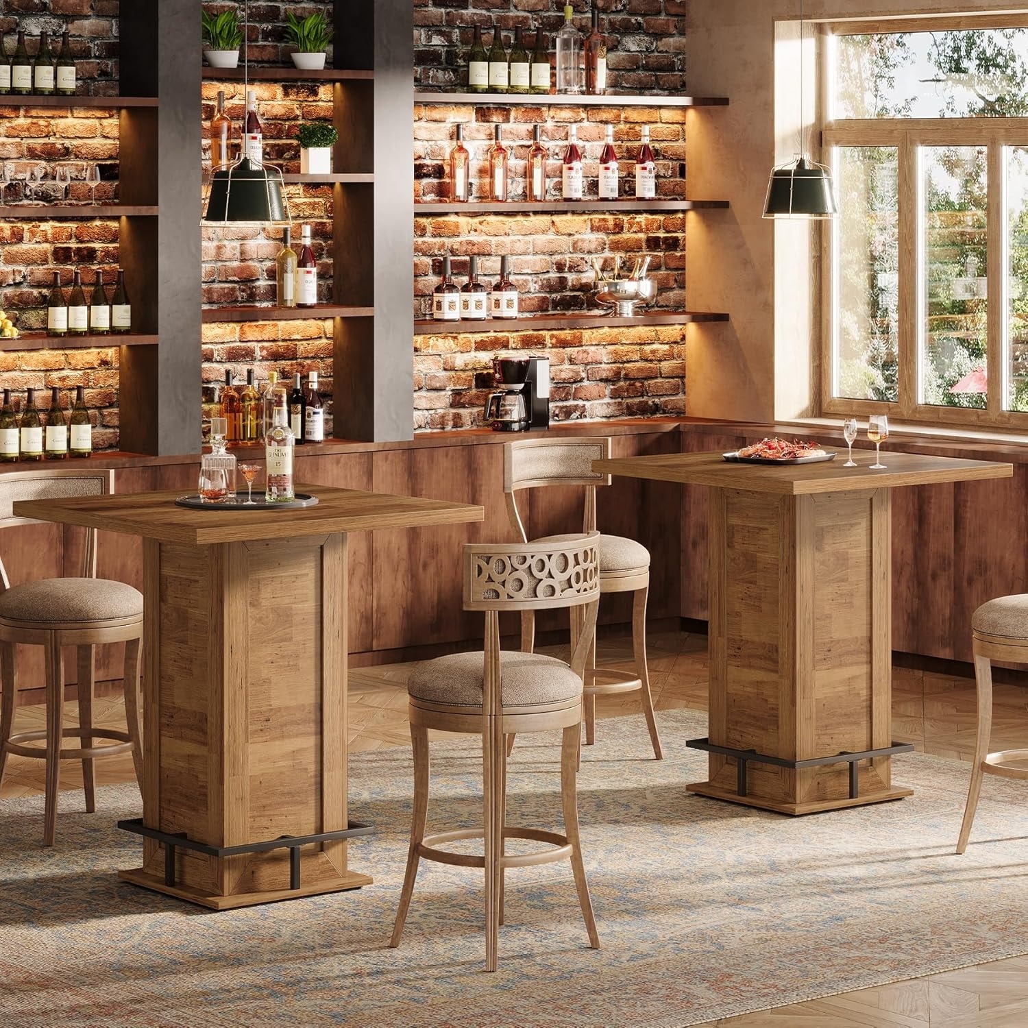 39.4" H Square Bar Table, Industrial High Top Bistro Pub Table