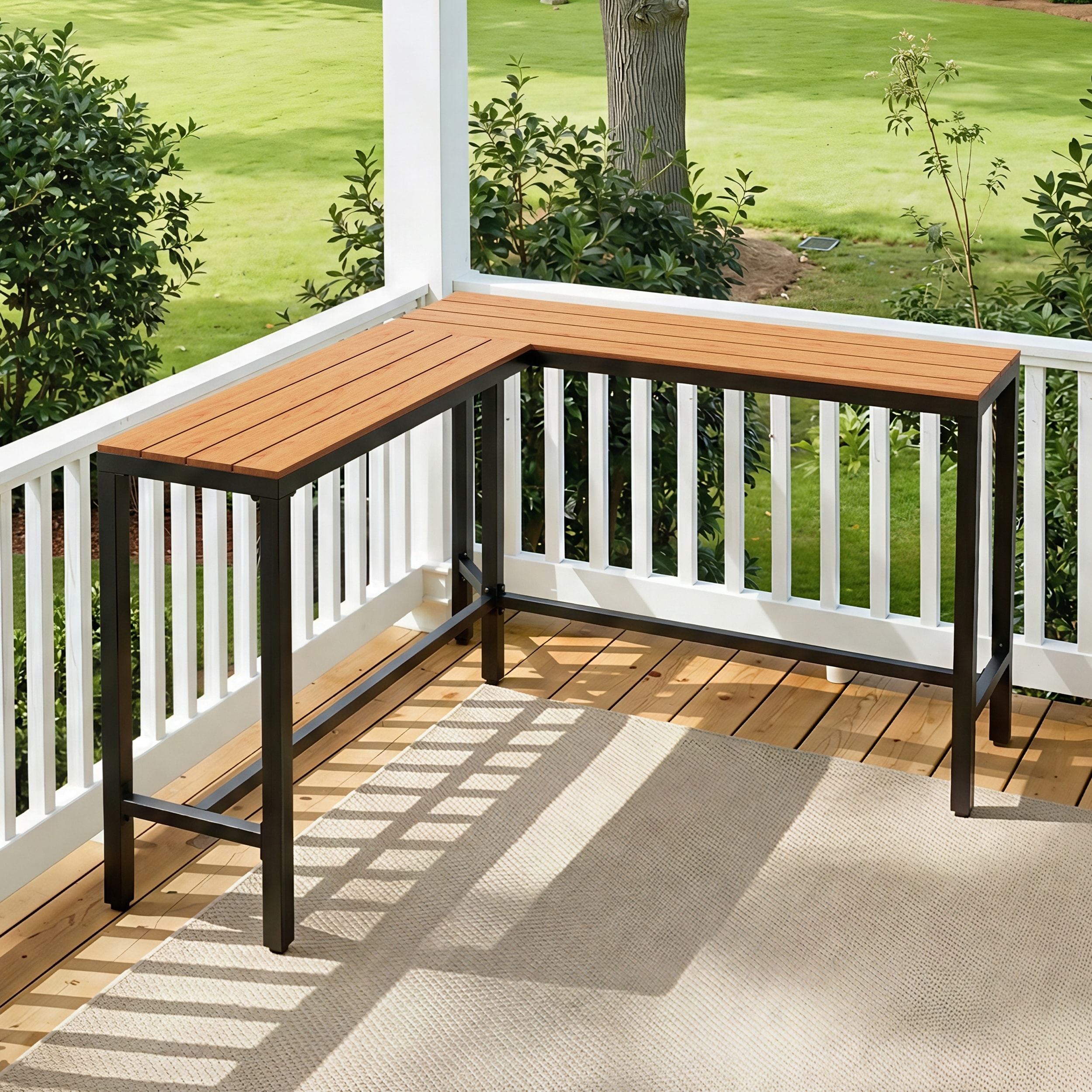 Crestlive Products Outdoor L-Shaped Patio Bar Table Pub Table Dining Table