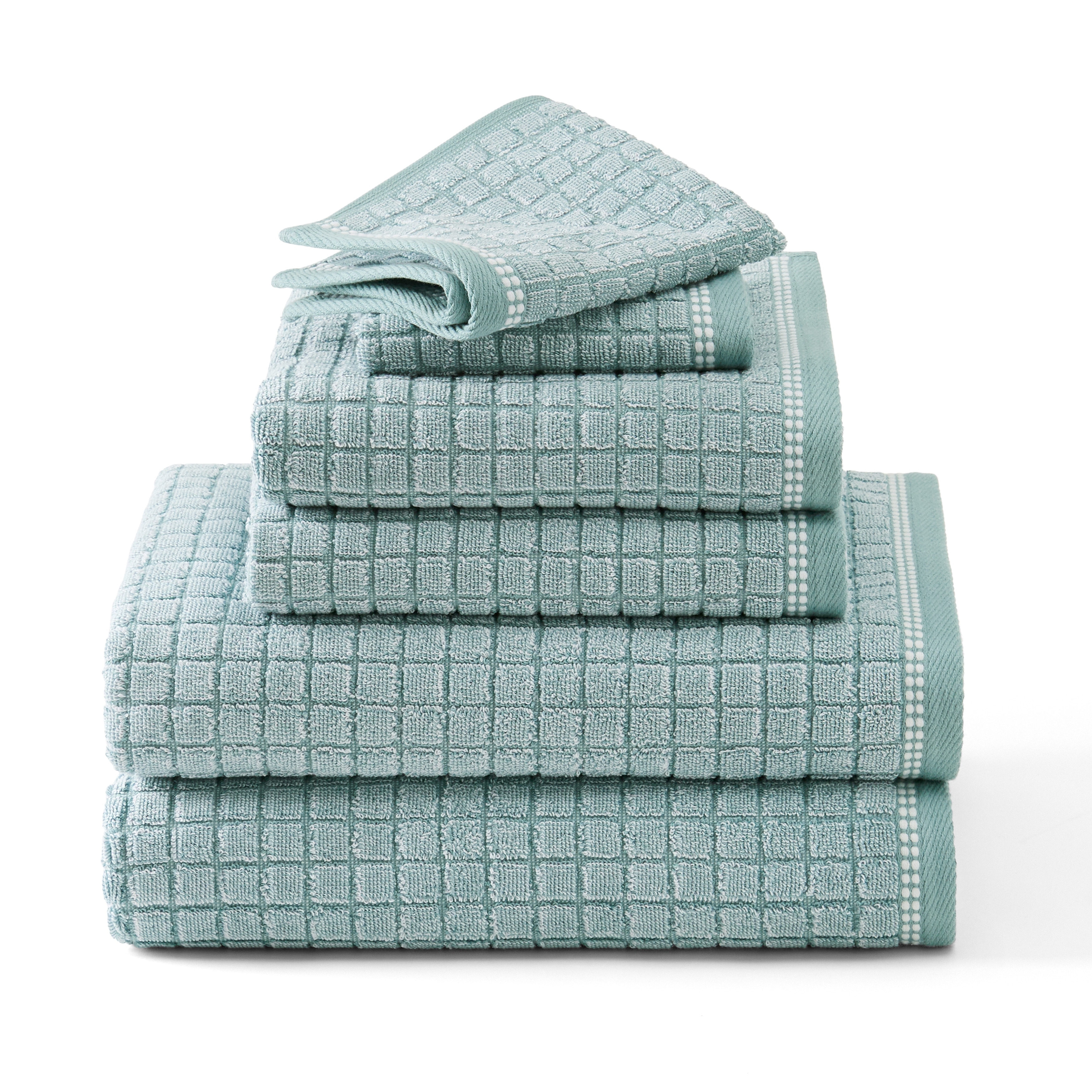 TOWN & COUNTRY EVERYDAY 6-Piece Textured Windowpane Set, 2 Bath, 2 Hand, 2 Wash, 100% Cotton