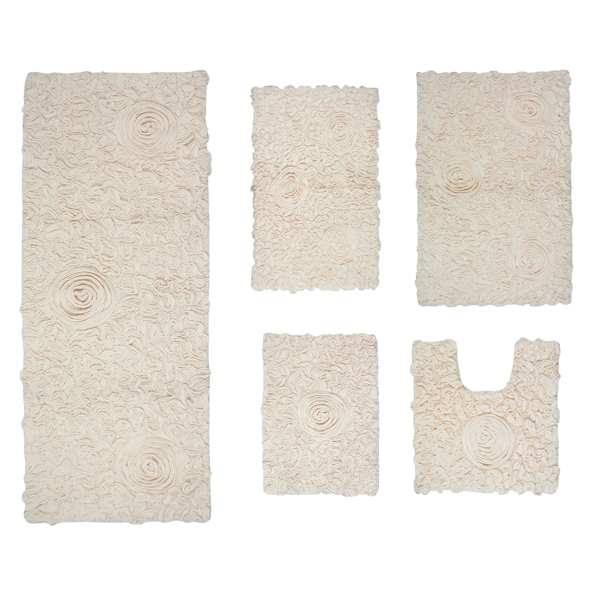 Bell Flower Collection 100% Cotton Non-Slip Bathroom Rug Set, Machine Washable Bath Rug, 5 Piece Bath Mat Set with Runner