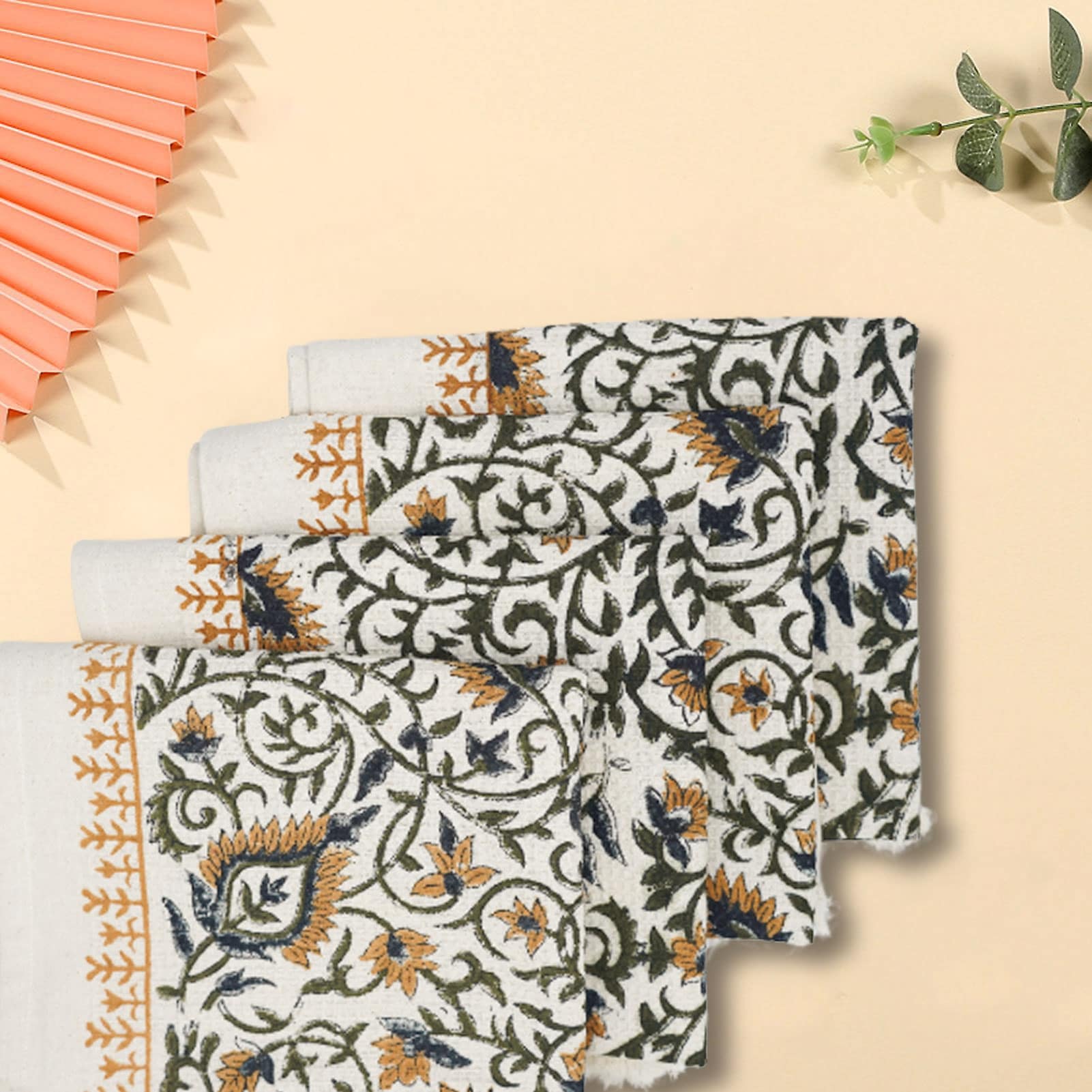 Fabdivine Handmade Floral Block Print Kitchen or Bath Room Hand Towels Home or Office Accent