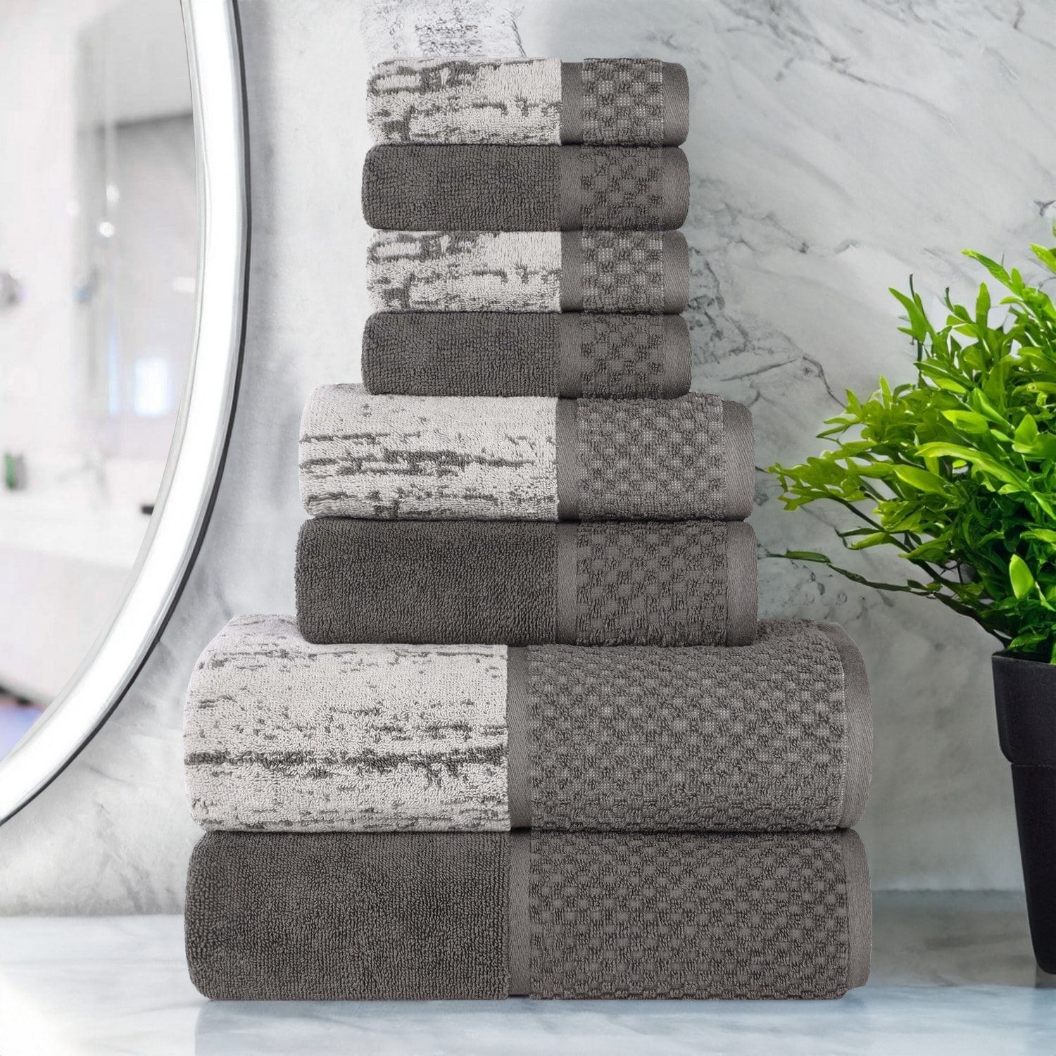 Superior Lodie Cotton Jacquard Solid and Two-Toned 8 Piece Towel Set