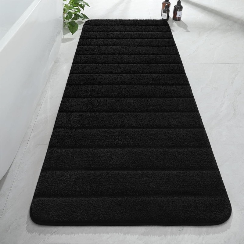 Luxury Long Bathroom Runner Rug 24x60 Black Non-Slip Mat