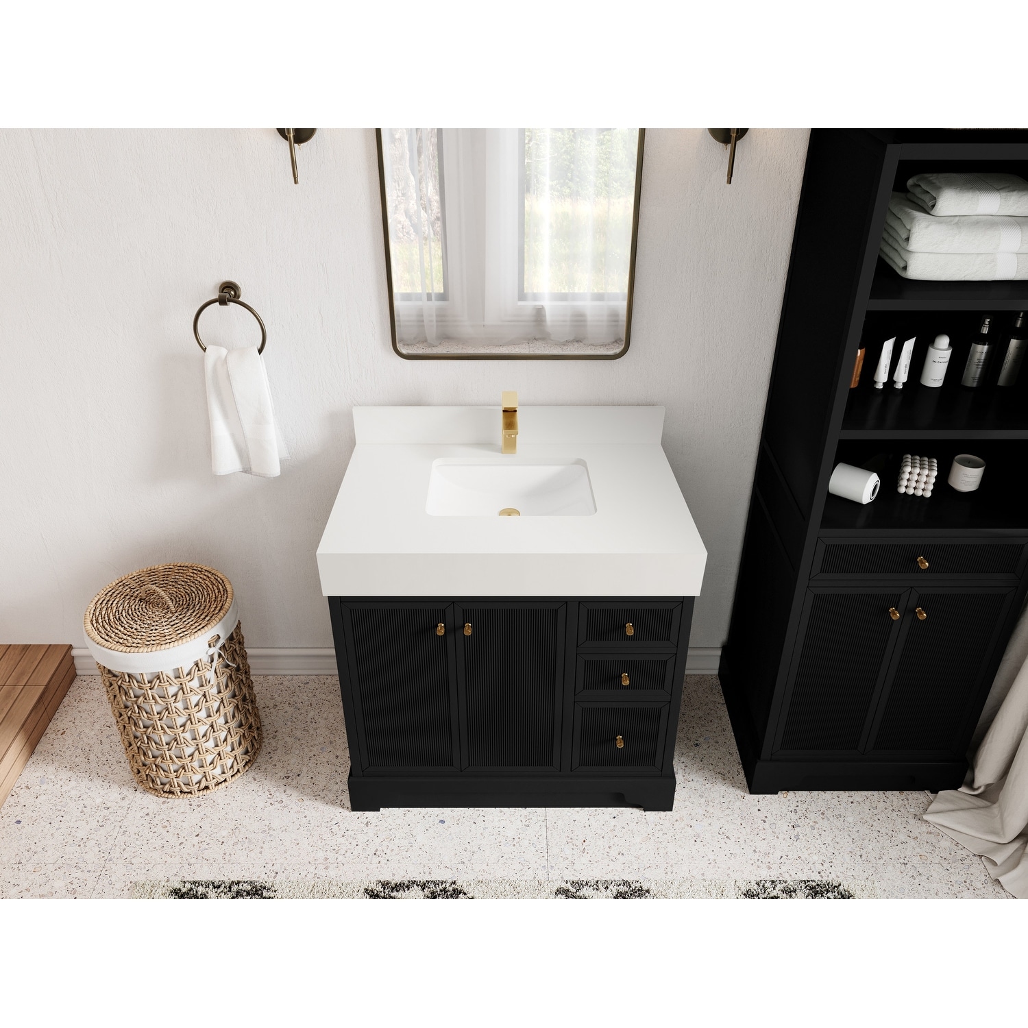 36" Bathroom Vanity with Resin Sink - Solid Wood Frame, Freestanding Storage Cabinet