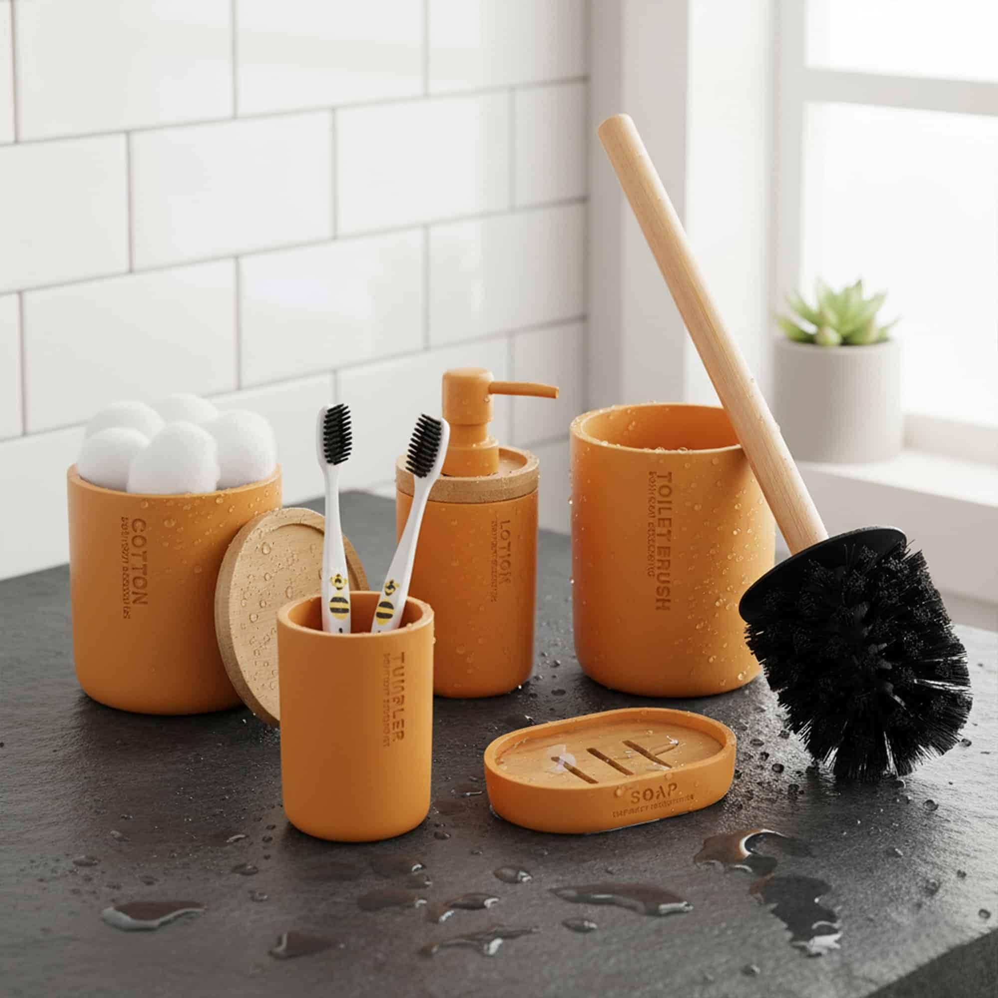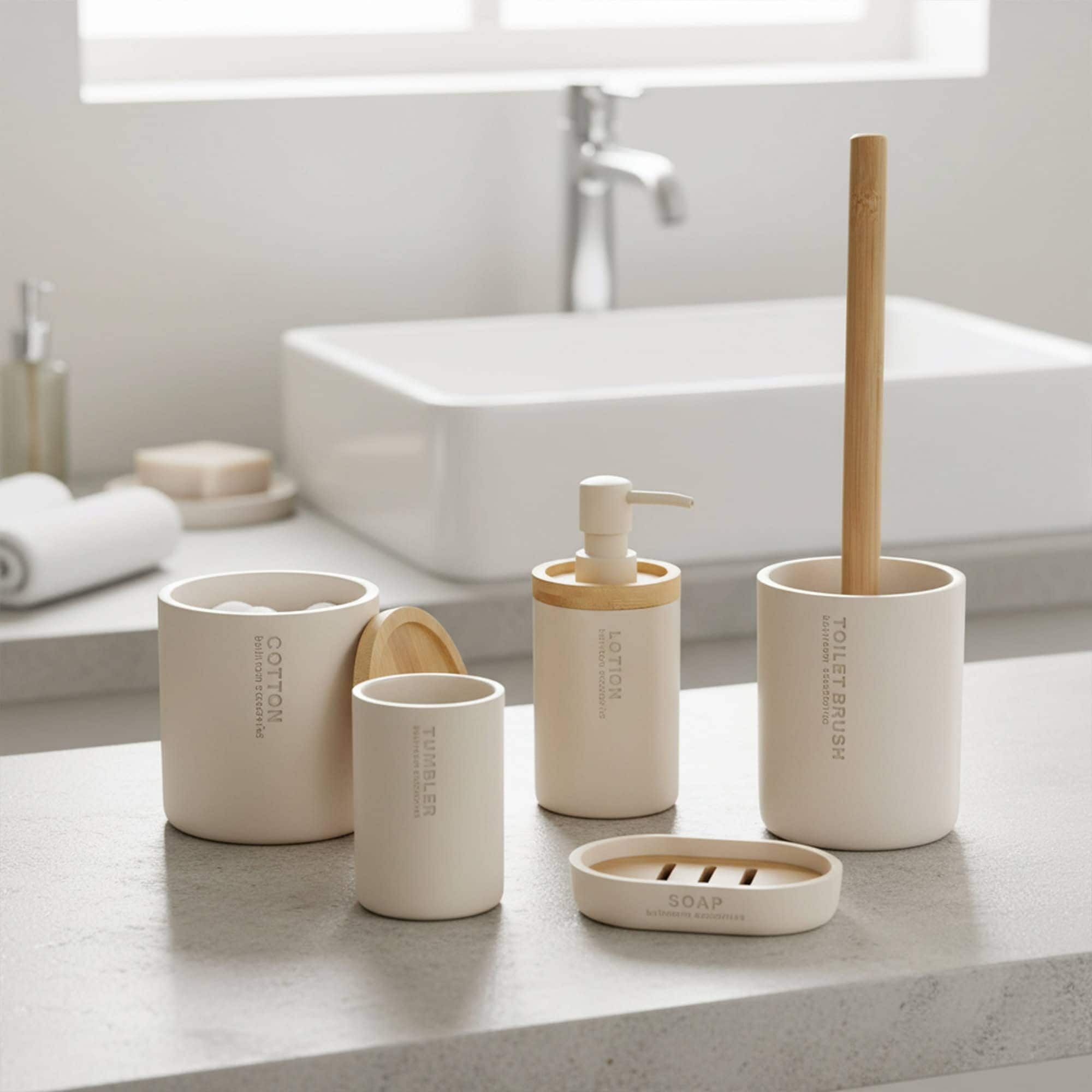 Bathroom Essentials Set Natural Bamboo Bath Set Accessories 5 pieces