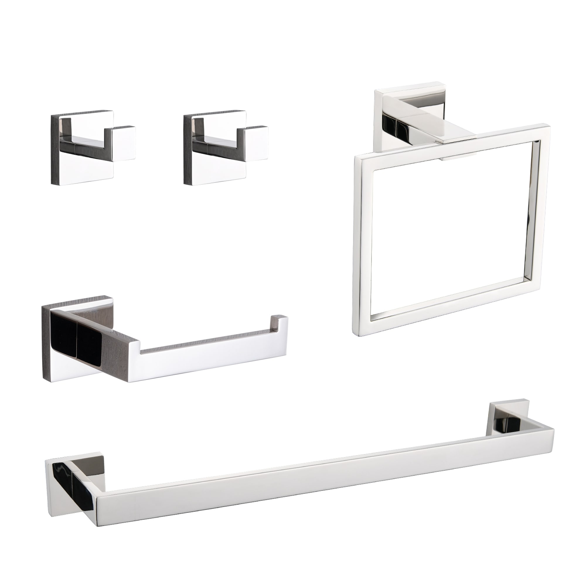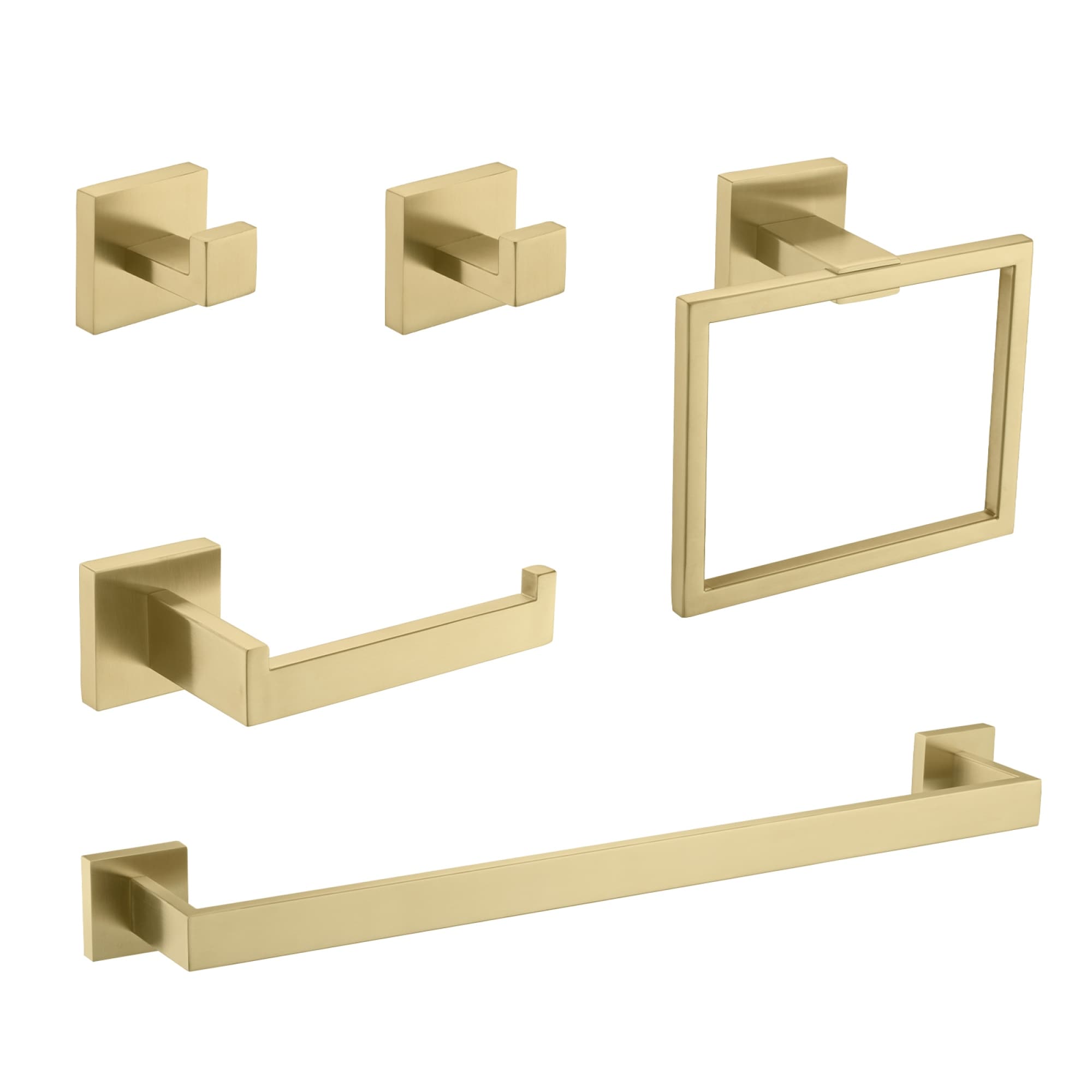 Roomfitters 5-Piece Bathroom Hardware Set, Stainless Steel Towel Bar, Toilet Paper Holder, Towel Ring, 2 Robe Hooks