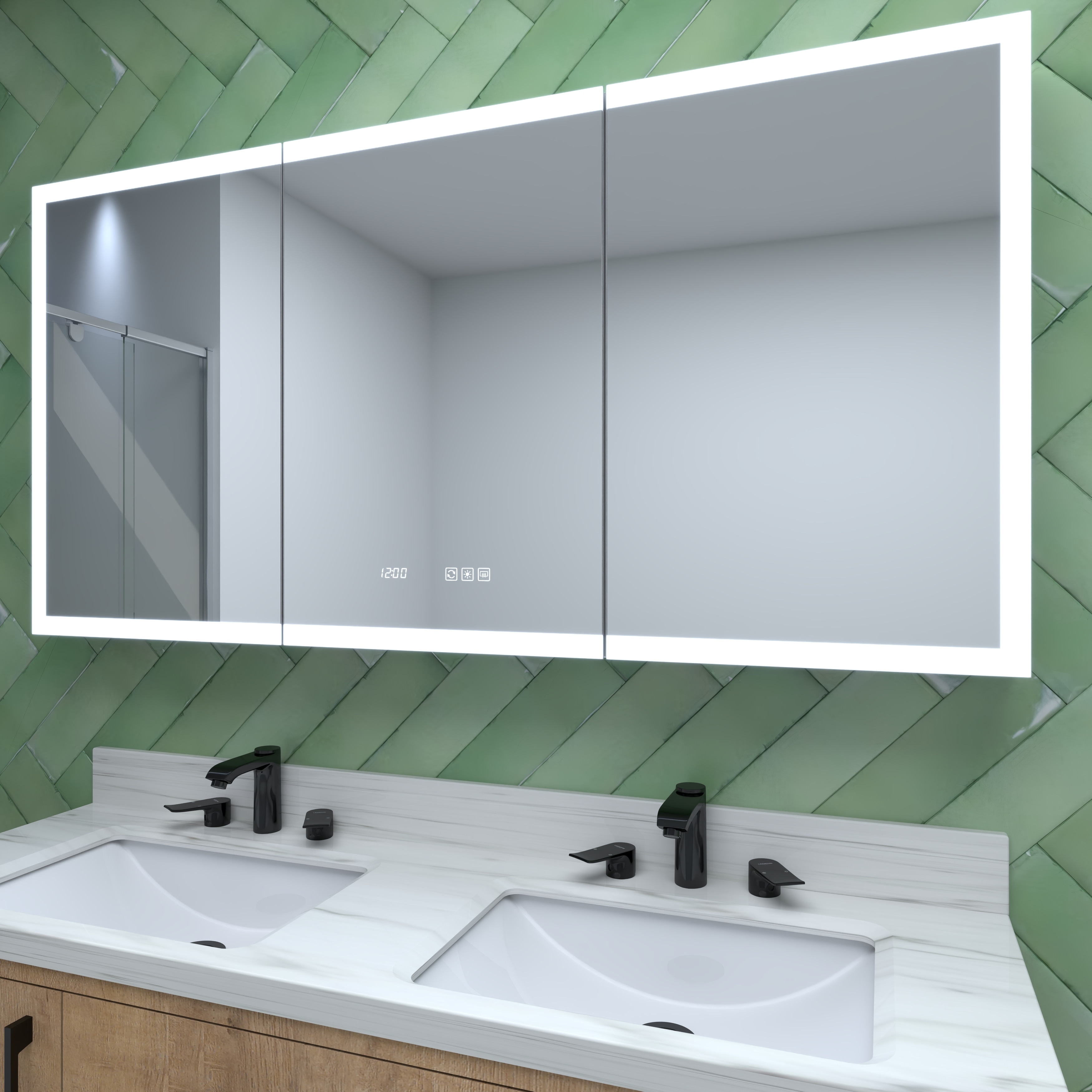 60 in. W x 30 in. H Rectangular Silver Aluminum Recessed/Surface Mount Medicine Cabinet with Mirror LED and Clock