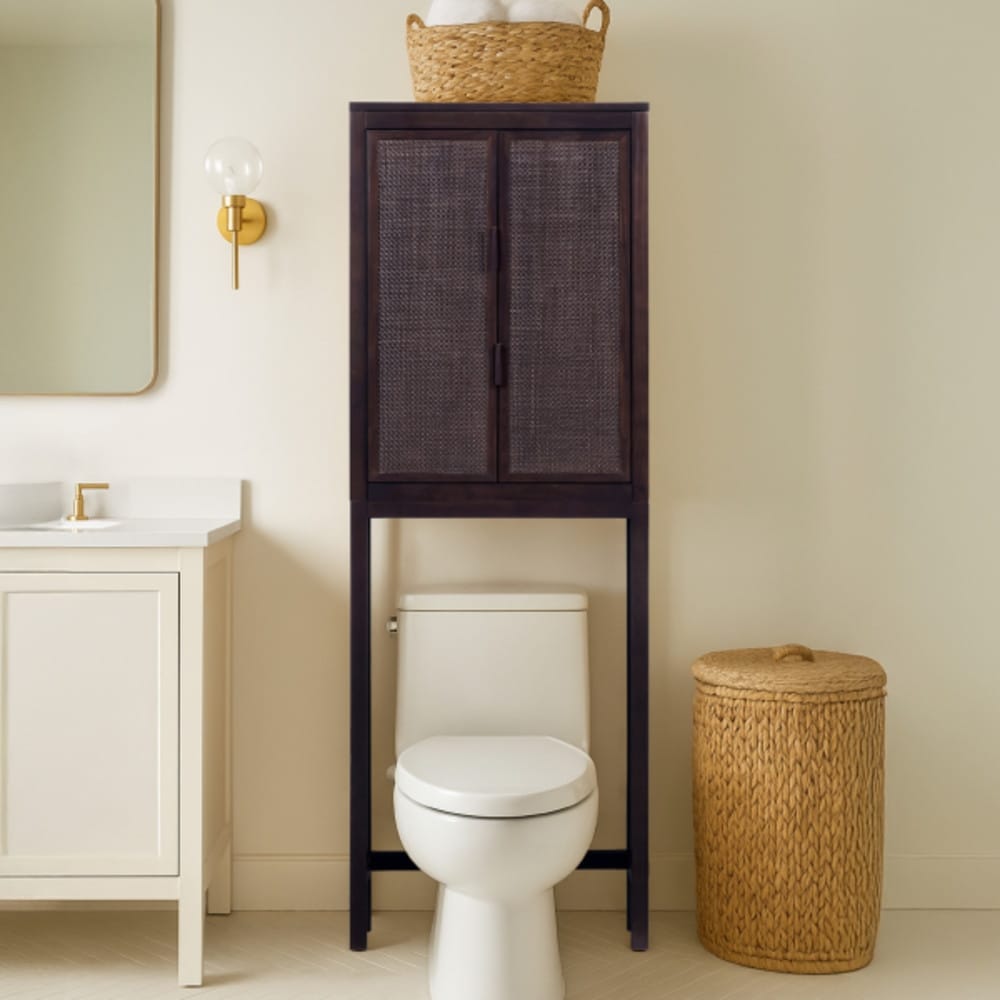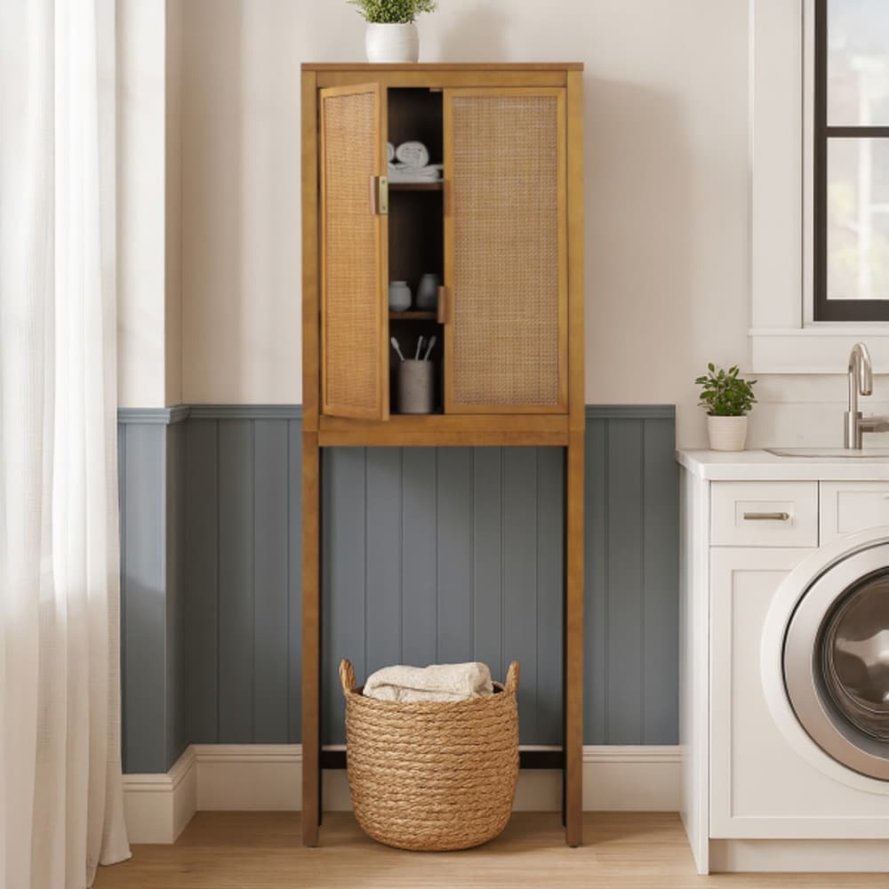 Teamson Home 24 in. W x 68 in. H Over-the-Toilet Storage Cabinet with Rattan Doors and Sturdy Shelves