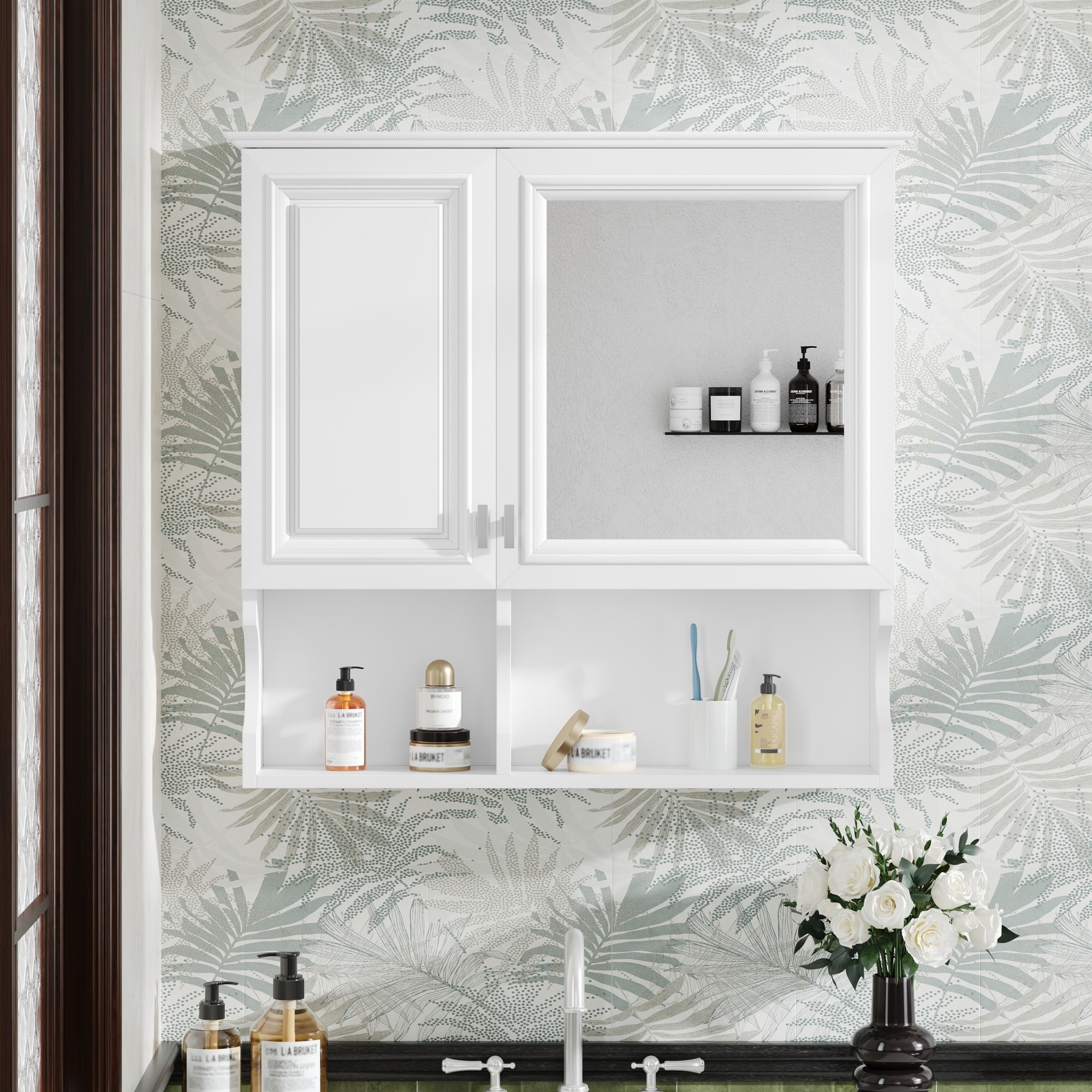 Roomfitters 35'' x 28'' Wall Mounted Bathroom Storage Cabinet with Mirror Door, Modern Medicine Cabinet with 6 Open Shelves