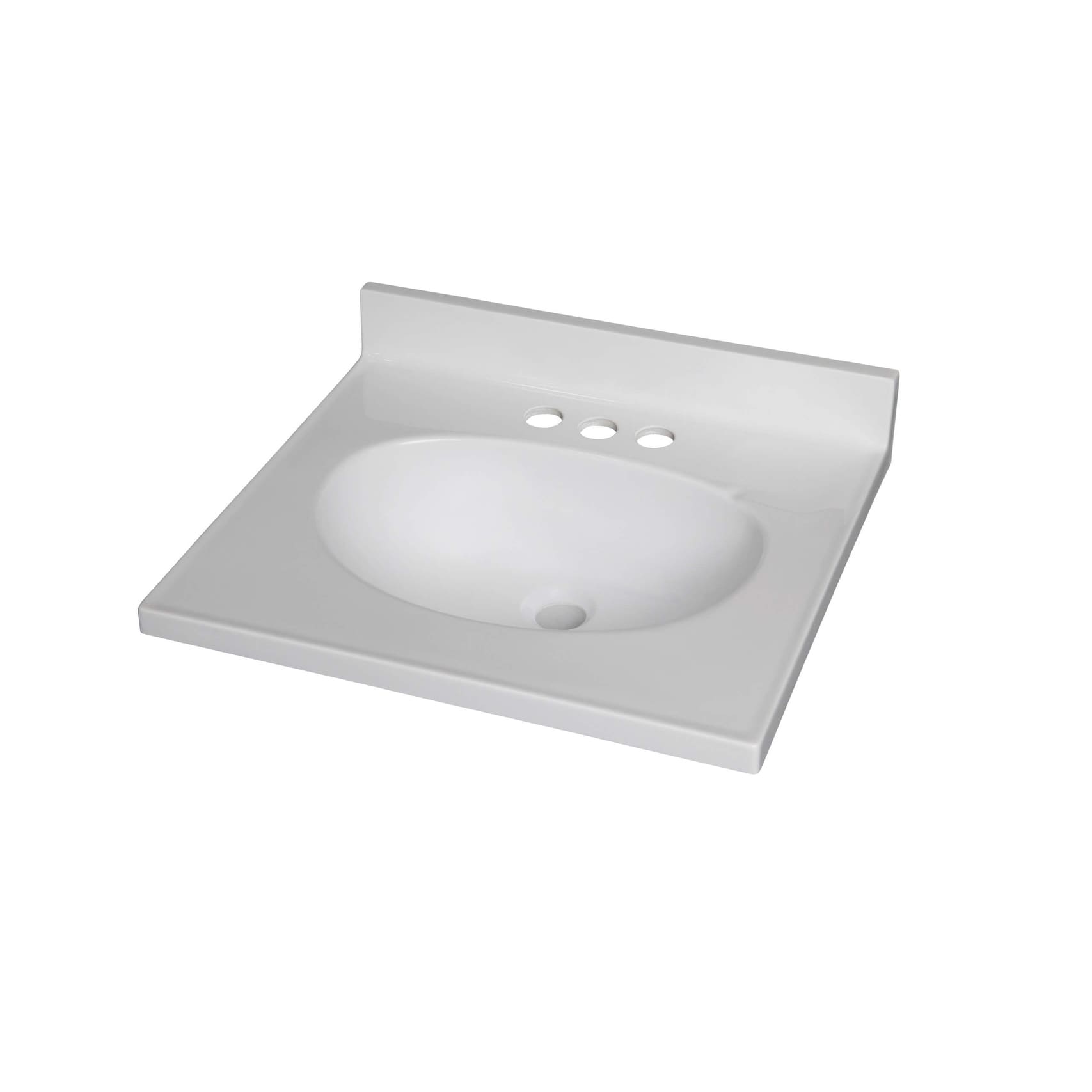 Fine Fixtures White Cultured Marble Top With Integrated Sink, 4" Backsplash and Overflow Included.