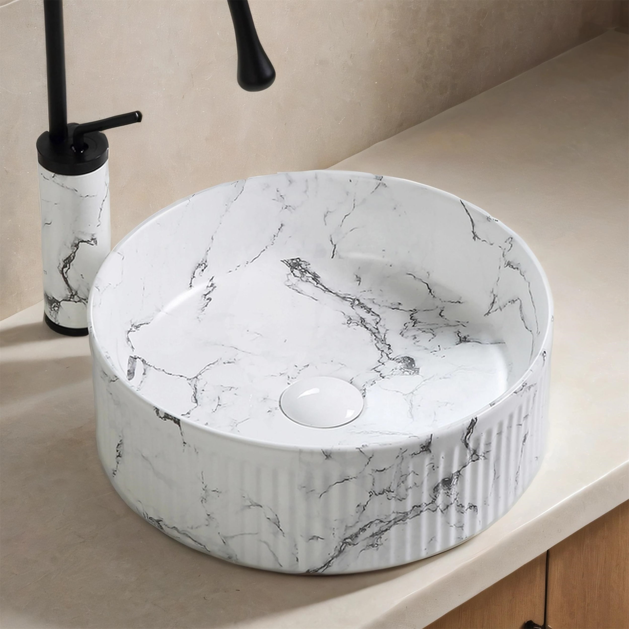 Marble Pattern Ceramic Vessel Sink with Faucet