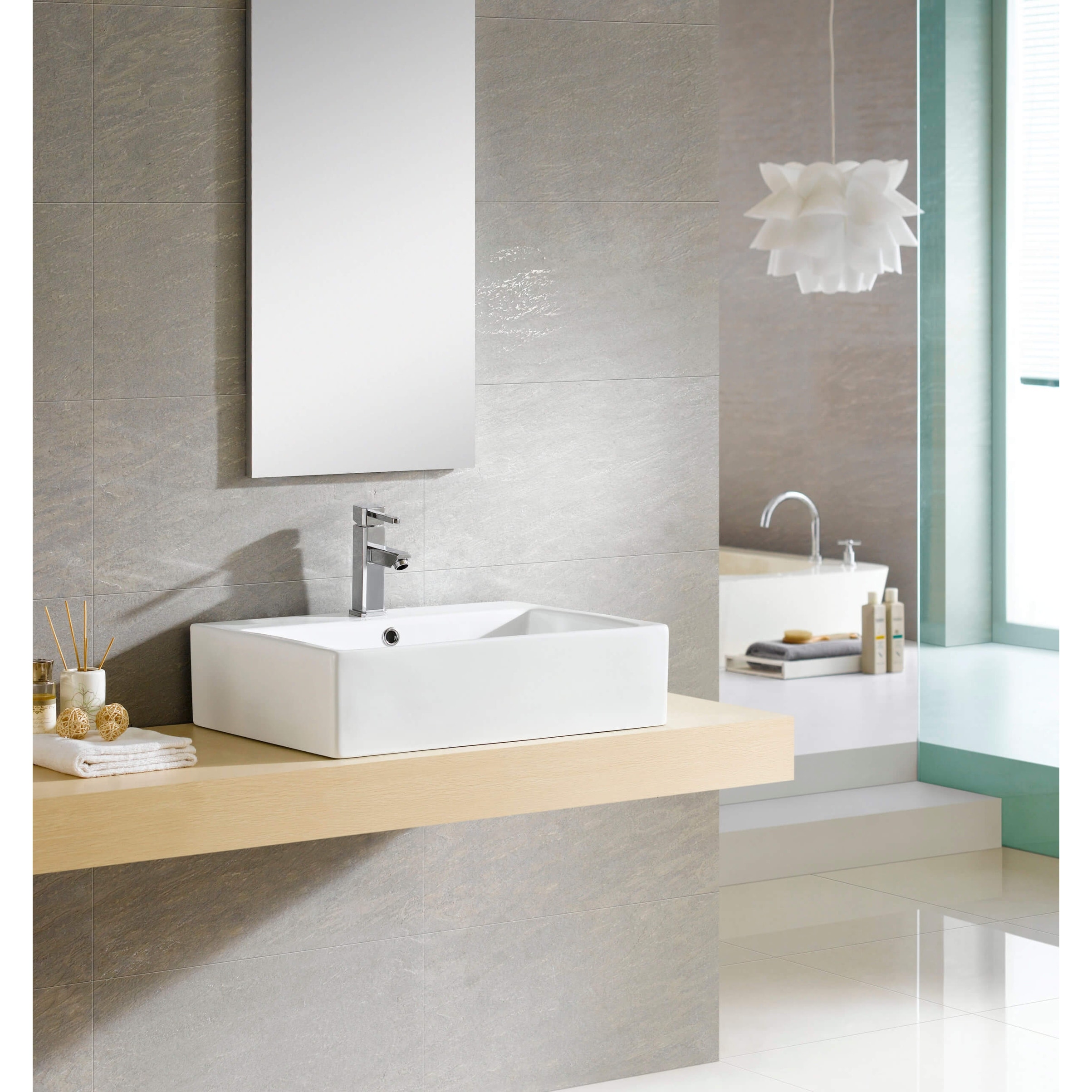 Fine Fixtures Ceramic White Rectangular Bathroom Vessel Sink