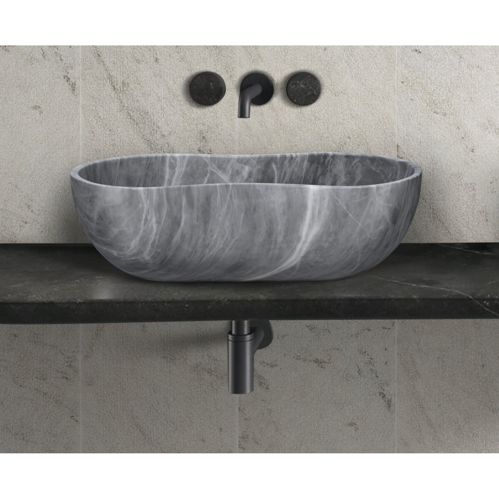 Roomfitters Marble Bathroom Vessel Sink, Natural Stone Countertop Wash Basin, Polished Oval Vanity Sink