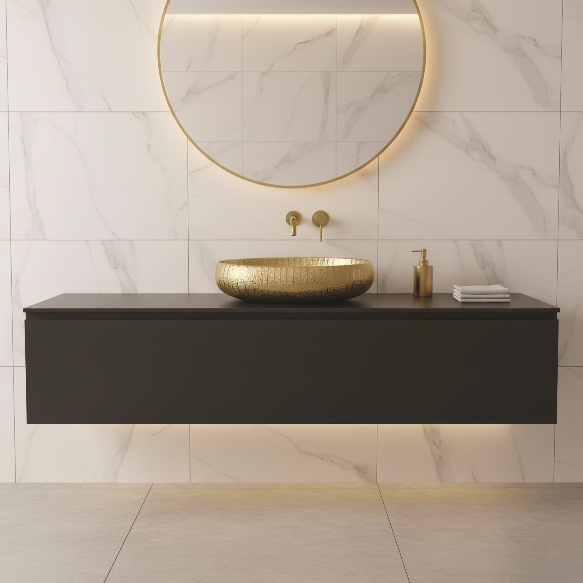 MEDUNJESS 47" Bathroom Sink Solid Surface Bathroom Vessel Sink - 47''