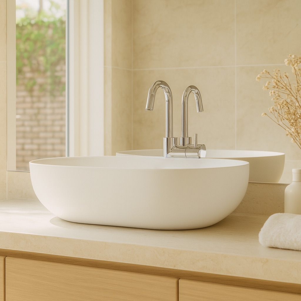 22 inch Evoluxe Matte White Solid Surface Round Oval Vessel Sink