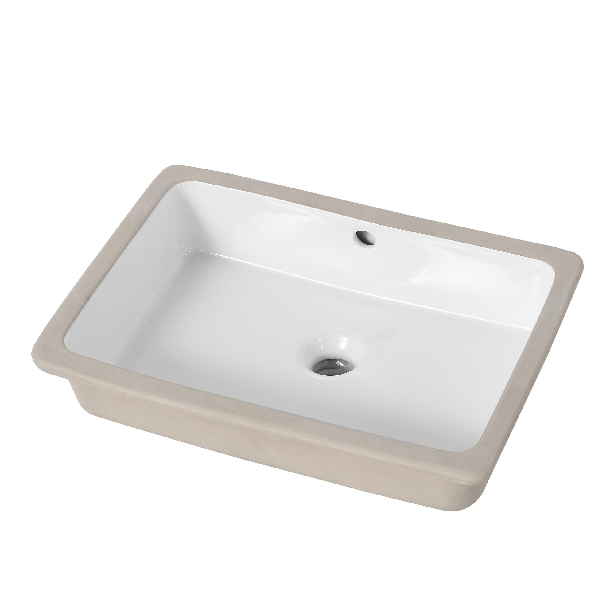Rectangular Undermount Ceramic Bathroom Vessel Sink with Overflow