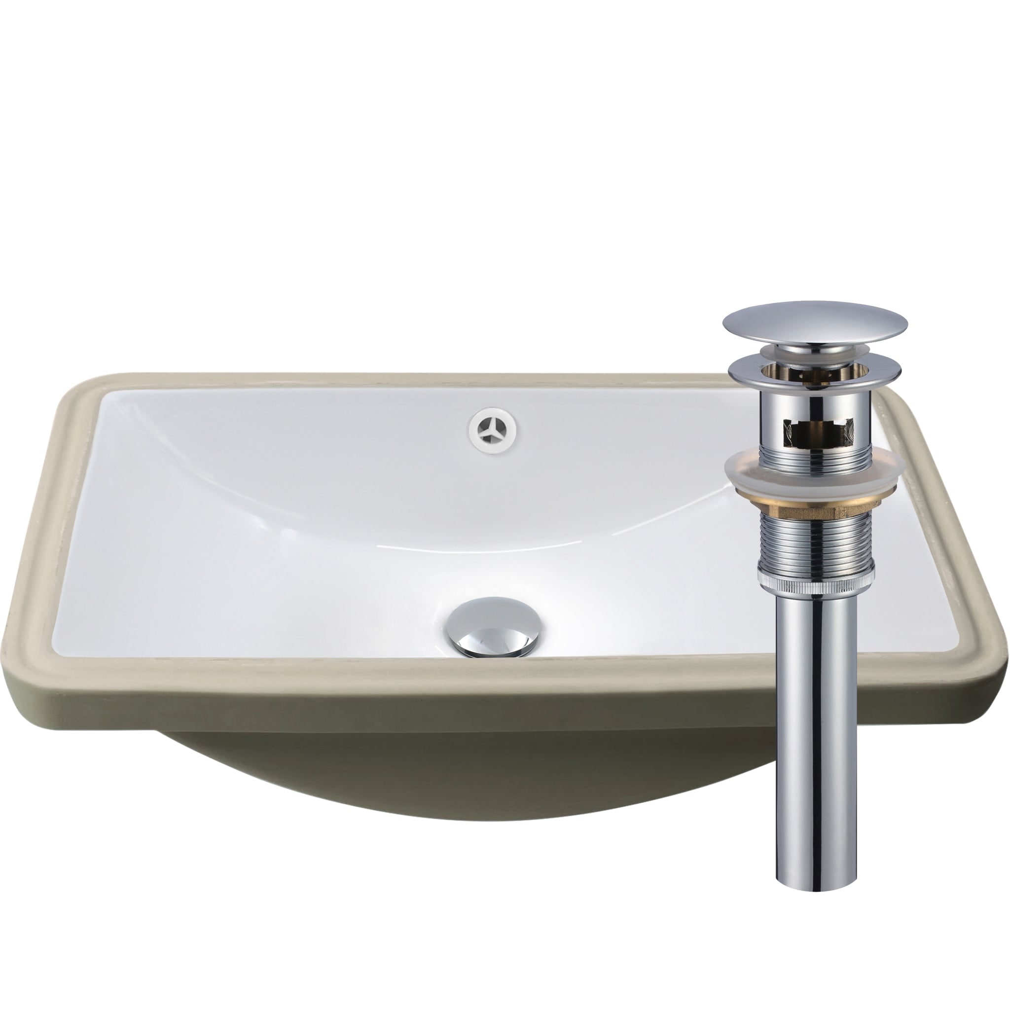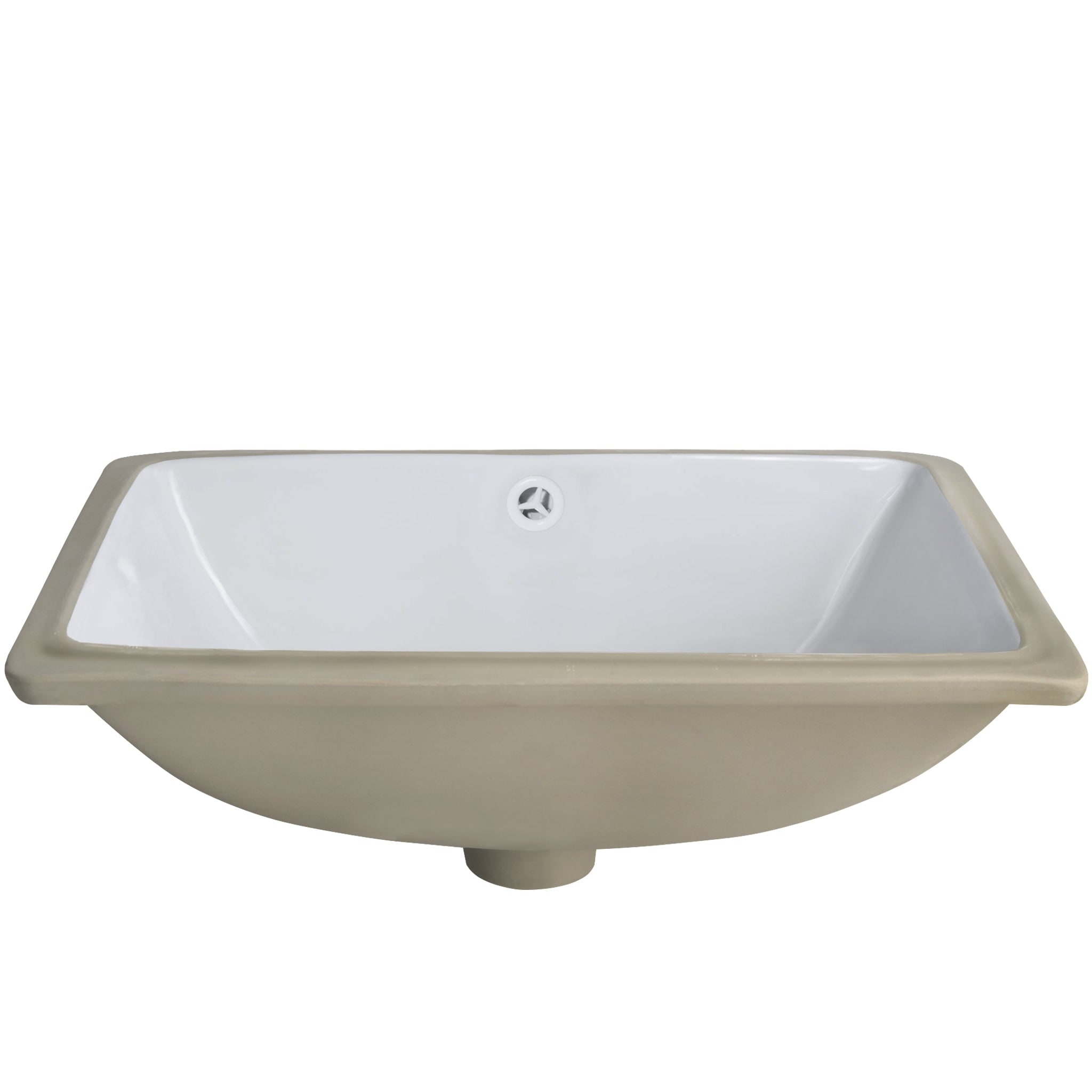 Novatto NP-U213907 Rectangular Undermount White Porcelain Sink with Overflow Drain Options, 22.375-inches