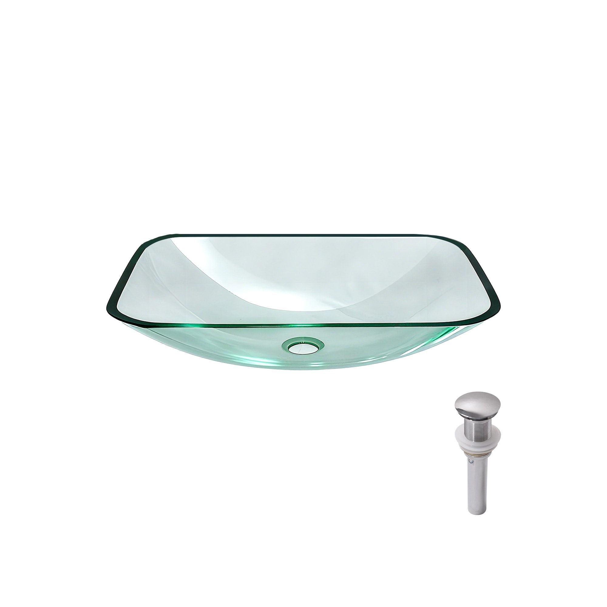 Bathroom Vessel Sink Above Counter Tempered Glass Square Sink with Pop-up Drain
