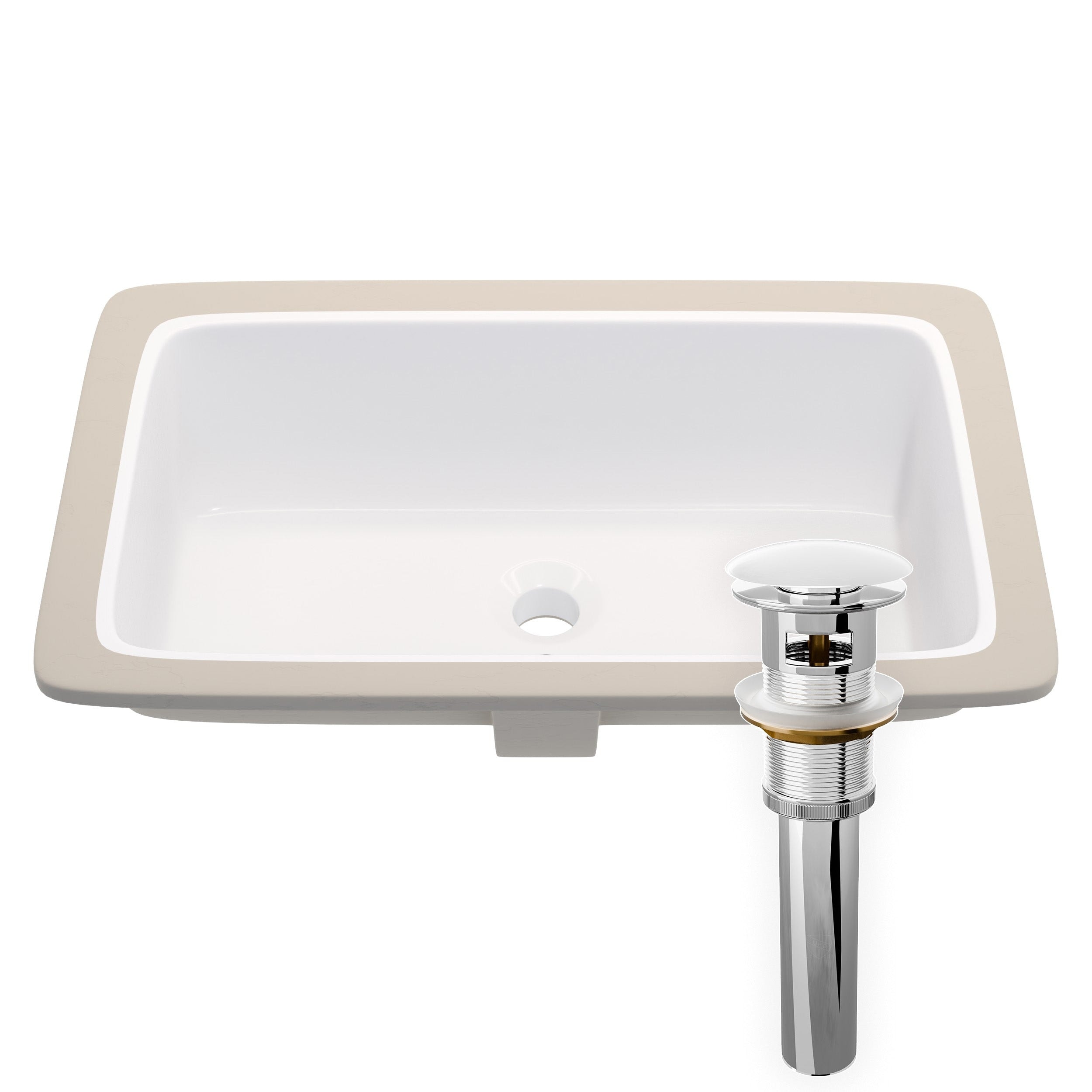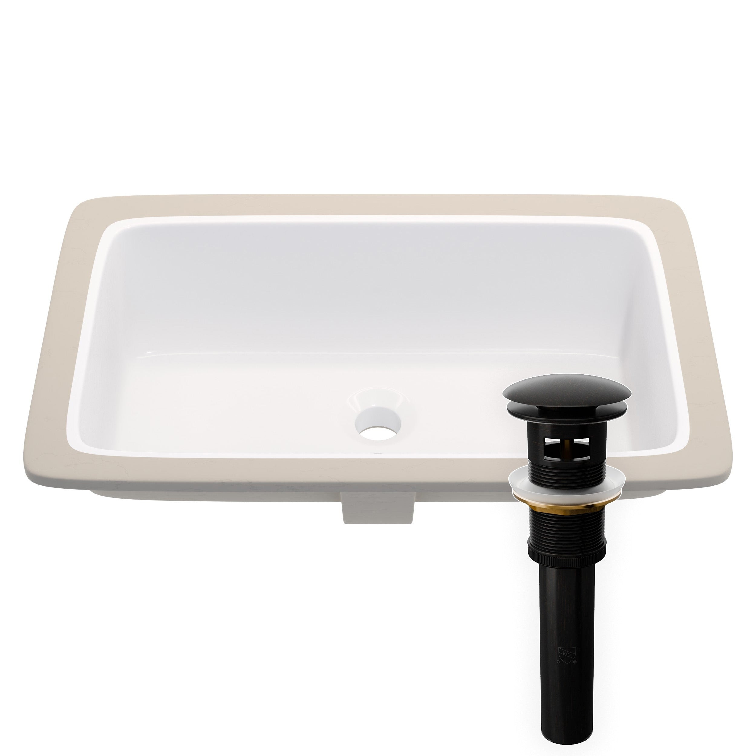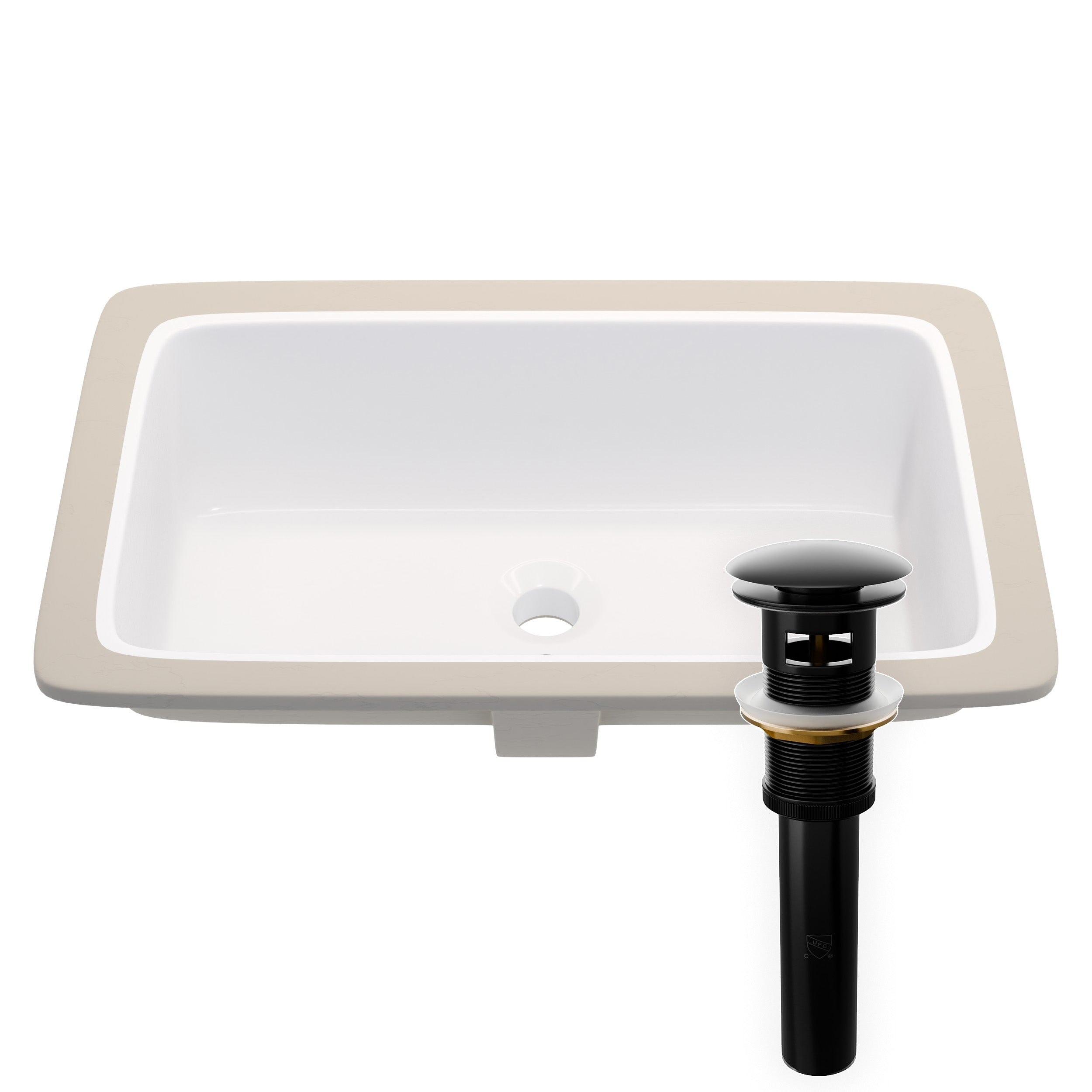 Novatto NP-U233921 Rectangular Undermount White Porcelain Sink with Overflow Drain Options, 21 x 13.375-inches