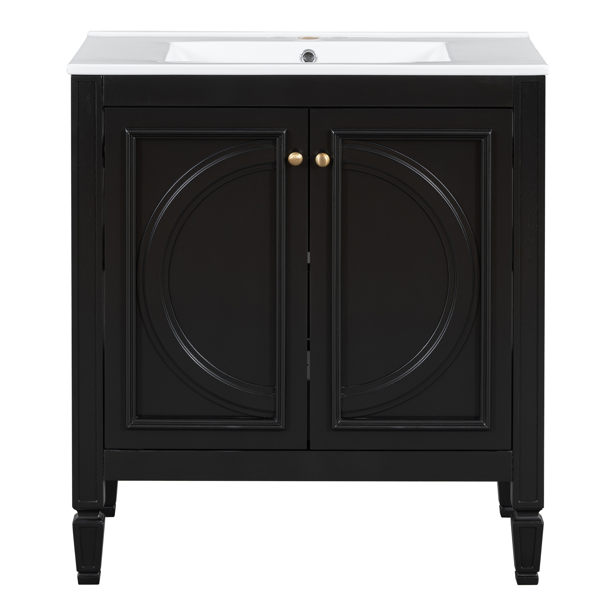 30" Bathroom Vanity with Sink Ceramic Combo, Multi-functional Bathroom Storage Cabinet with 2 Doors, 1 Drawer & Adjustable Shelf
