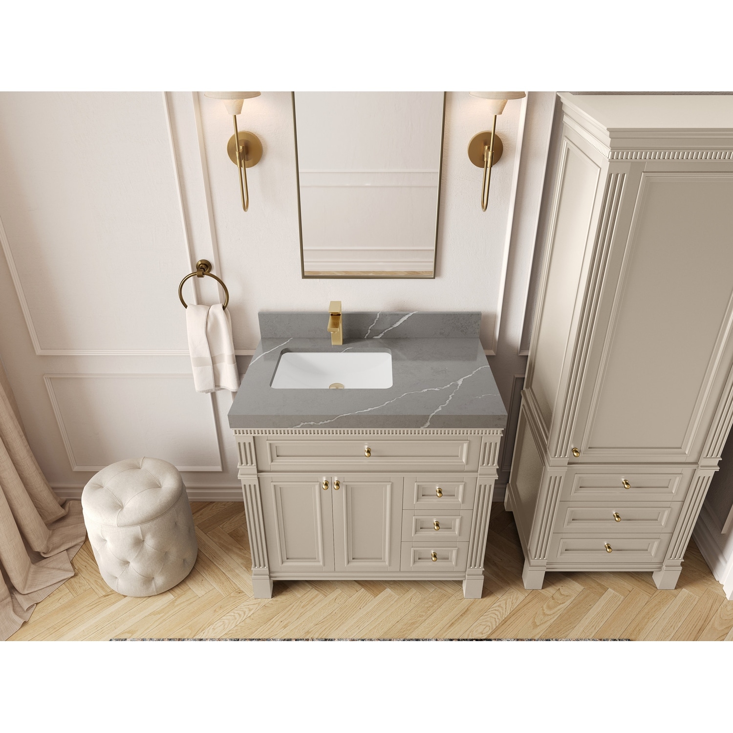 36" Freestanding Bathroom Vanity with Ceramic Sink, 2 Doors and 2 Drawers, Modern Grey Finish,8" Faucet Mount