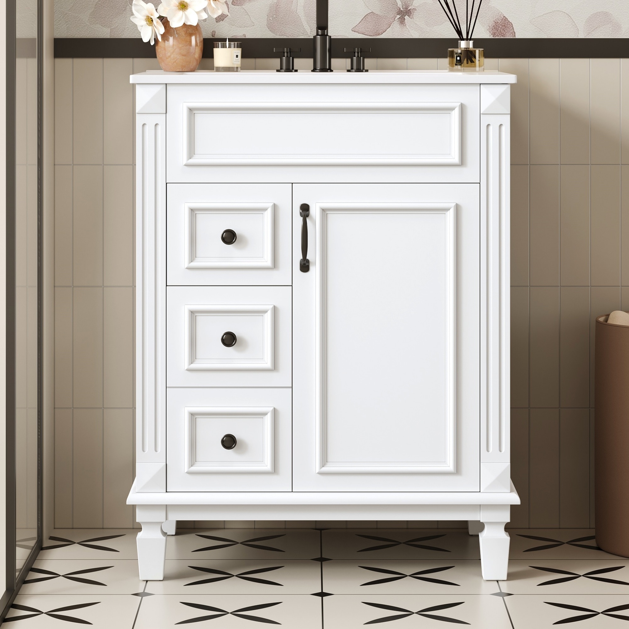 GDFStudio - Carriston Modern Bathroom Vanity with Ceramic Sink, Tip-Out Drawer, Soft-Closing Doors - 24'W