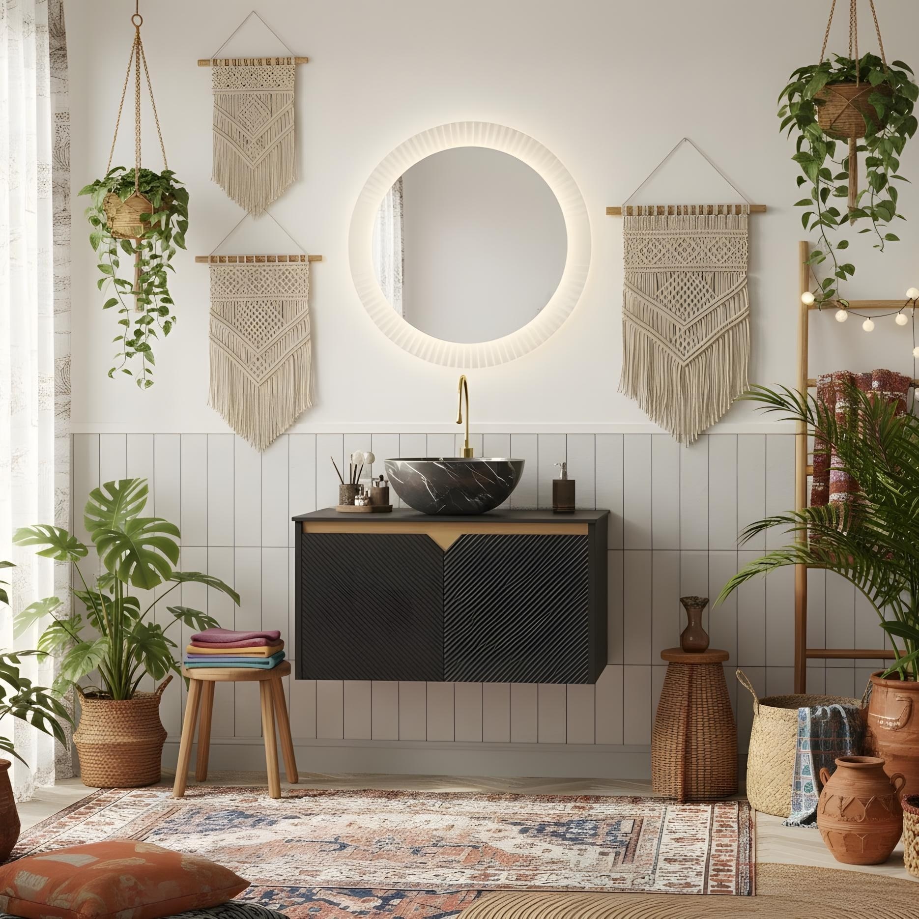36-Inch Bathroom Vanity with Round White Ceramic Sink, Floating Wall-Mounted Storage Cabinet