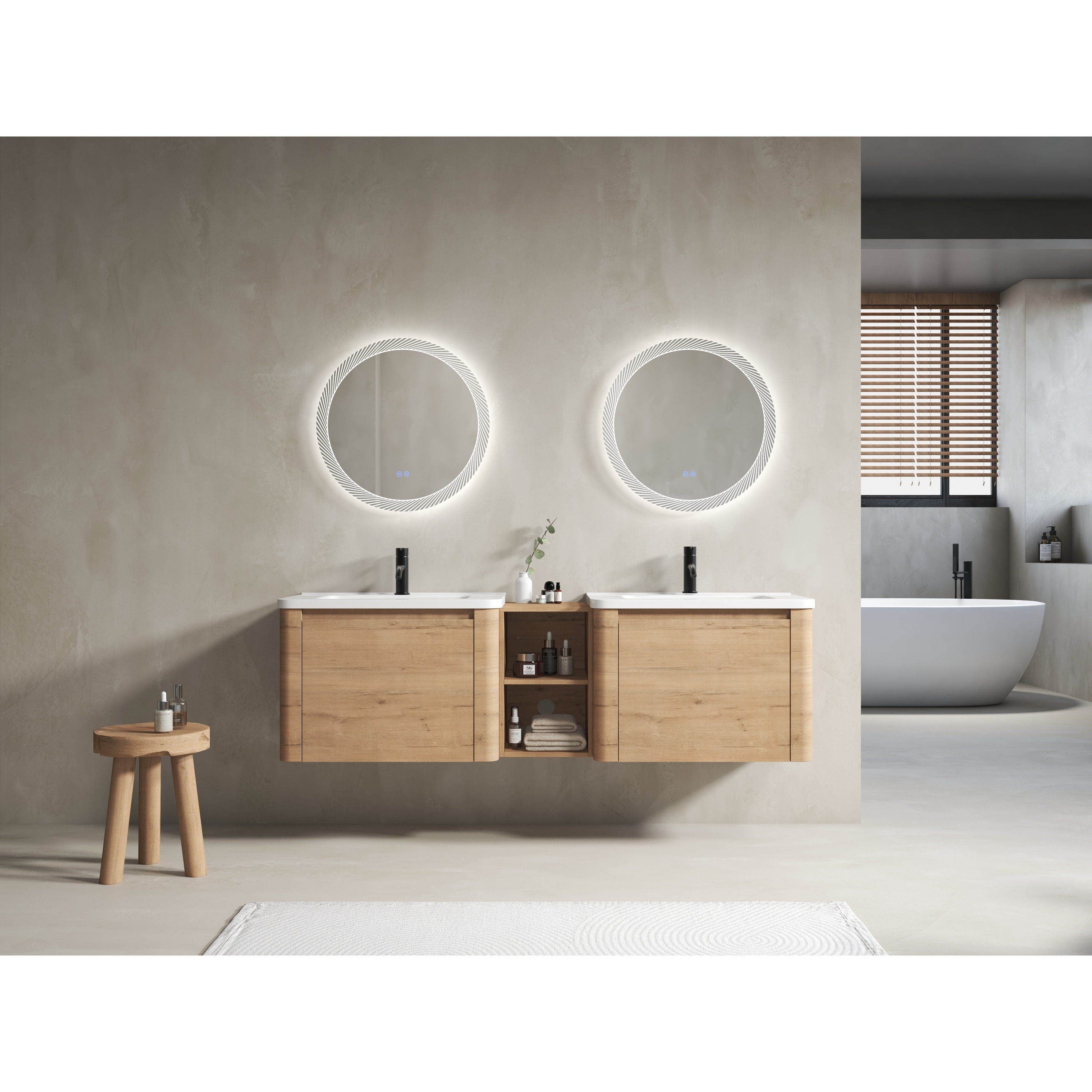 60'' Wall-Mounted Bathroom Vanity With White Ceramic Sink: Storage Shelves, 1 Soft-Close Door, KD-Packing, Plywood Construction.