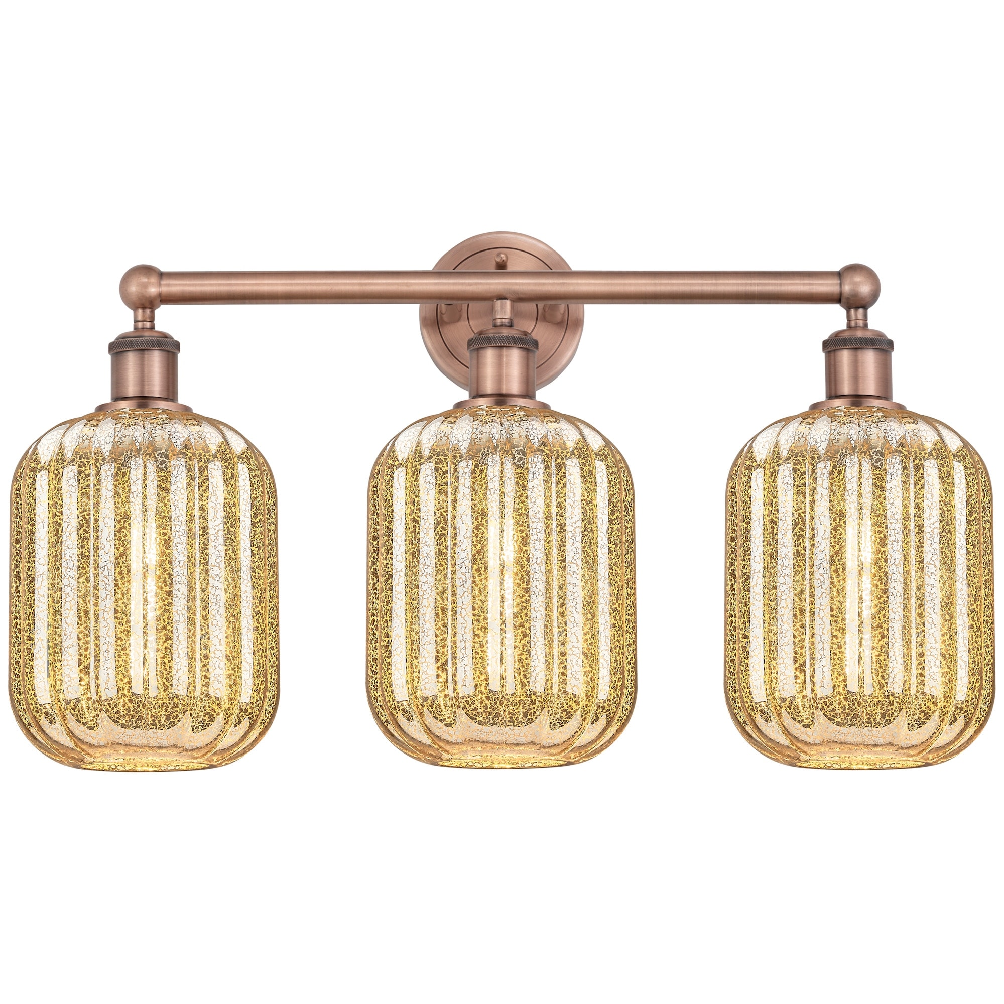 24 Inch 3-Light Vintage Bathroom Wall Sconce - Elegant Golden Metal and Glass Lampshade Vanity Light Fixture (Bulb Not Included)