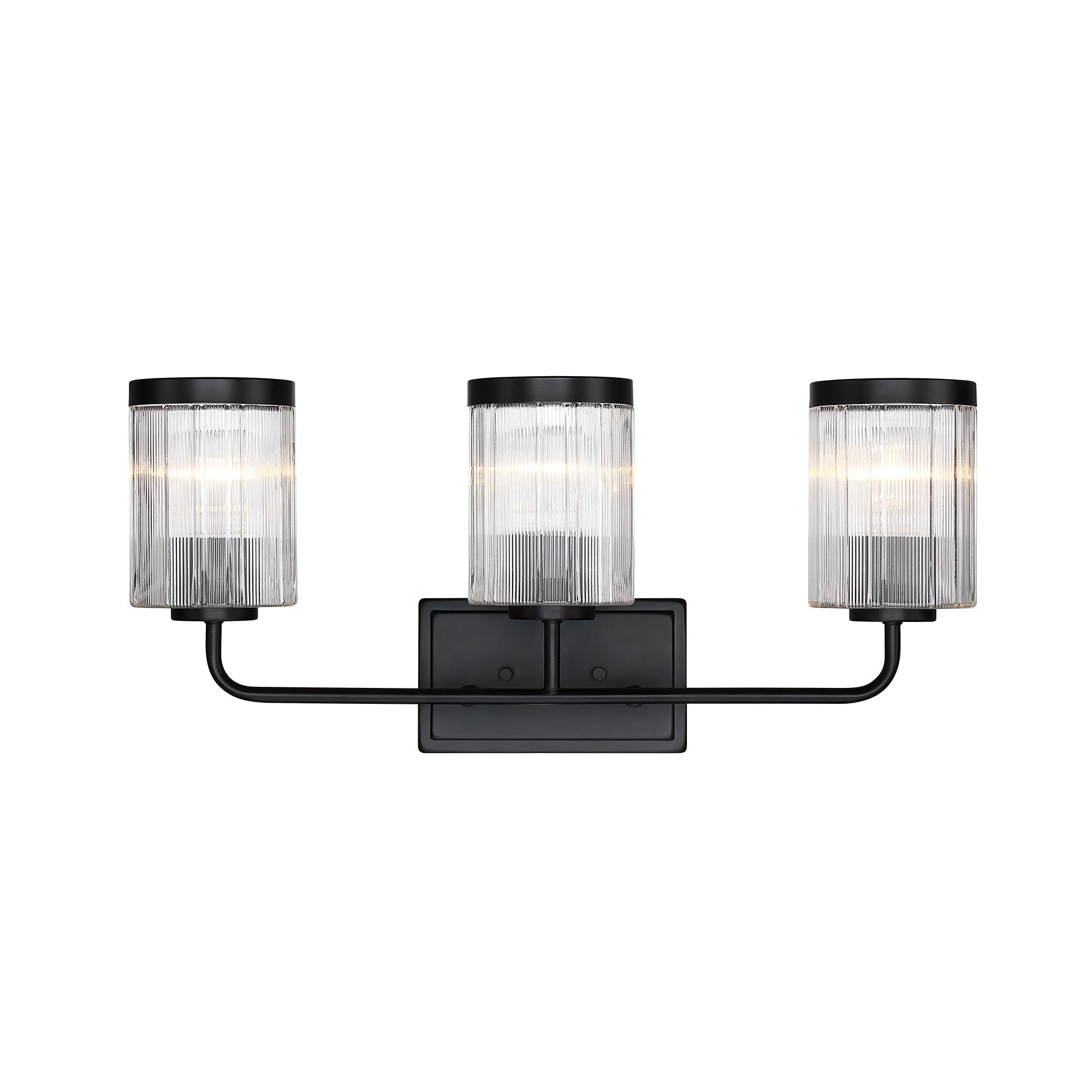 Matte Black 3-Light Vanity Light with Clear Globe Glass Shades for Bathroom Mirror