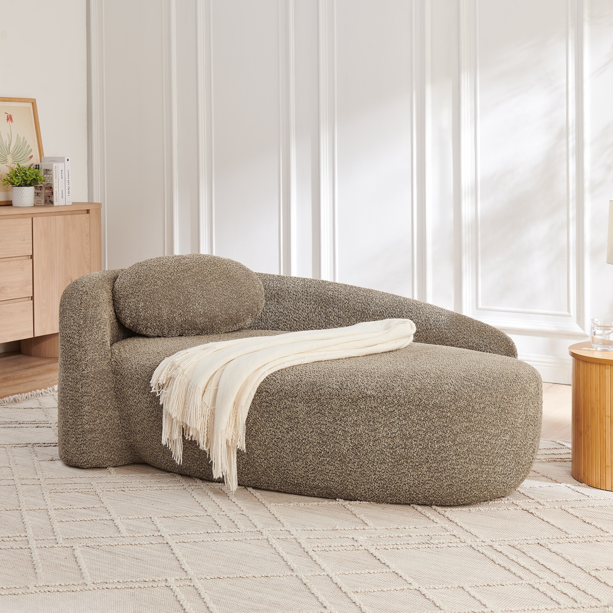 Modern Oval Single Lazy Sofa Chair with Integrated Backrest, Side Armrest and Pillow, Compact Space-Saving Lounge Chair