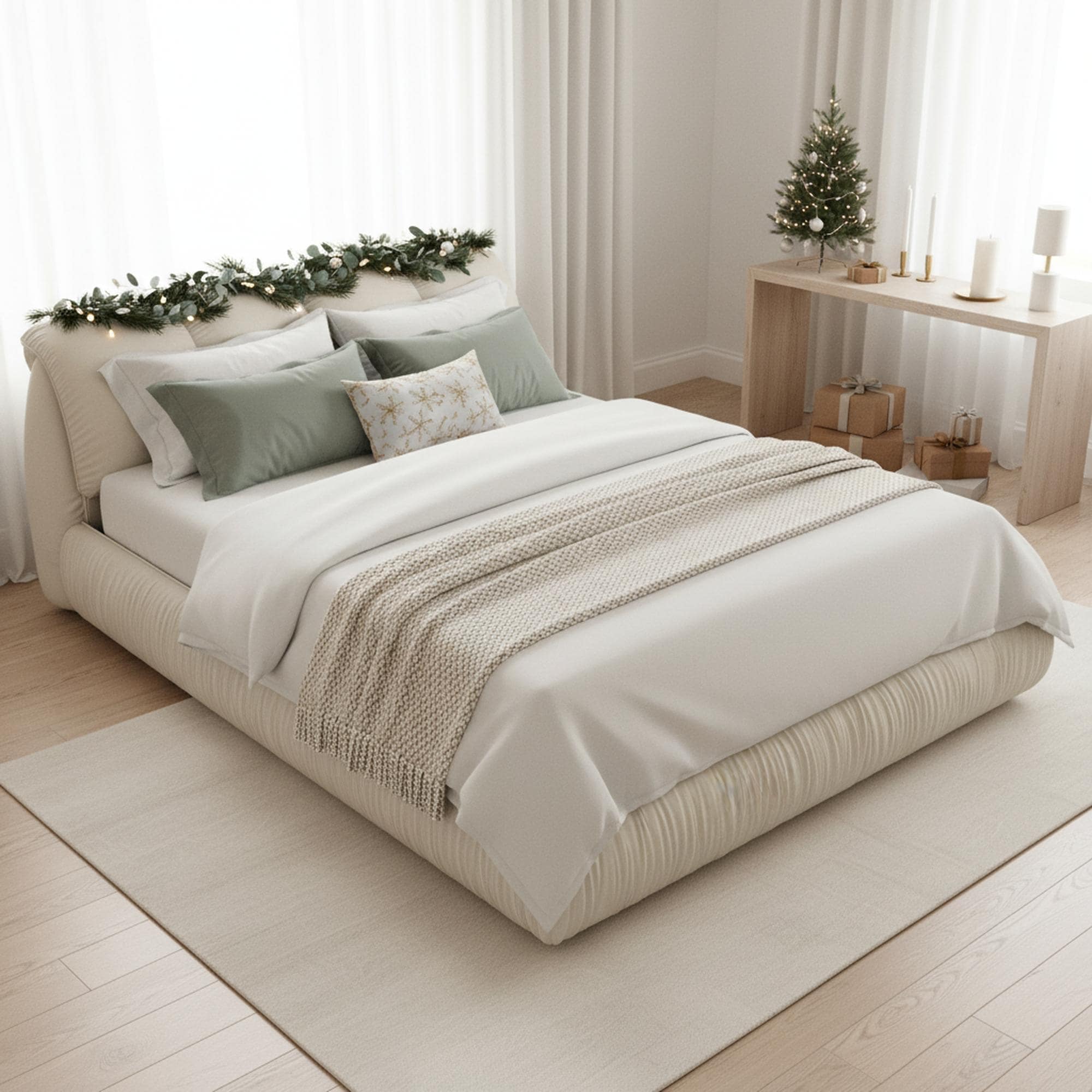 Homy Casa Trosa Luxury King Queen Upholstered Platform Bed with Oversized Cushion Headboard, Solid Pine Frame
