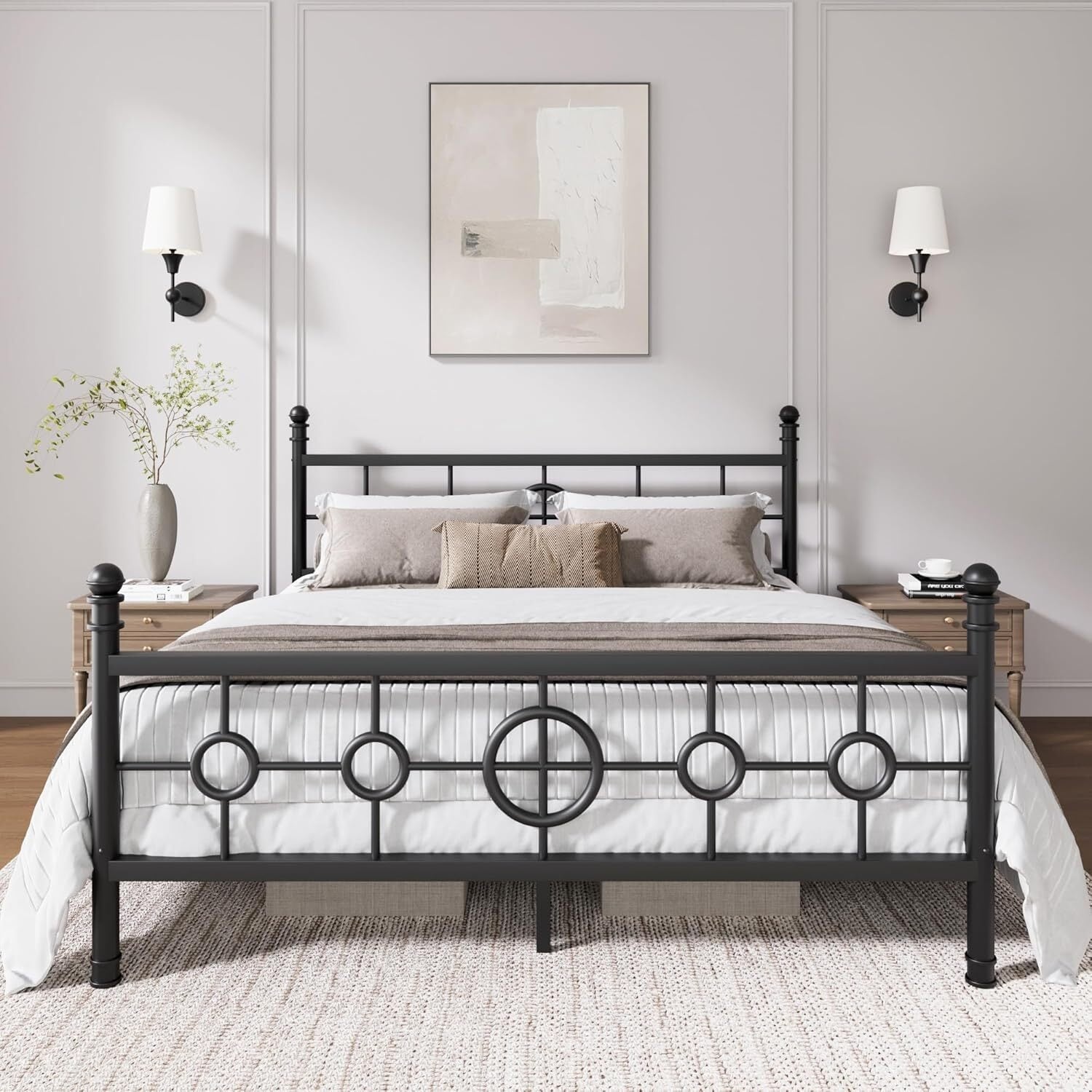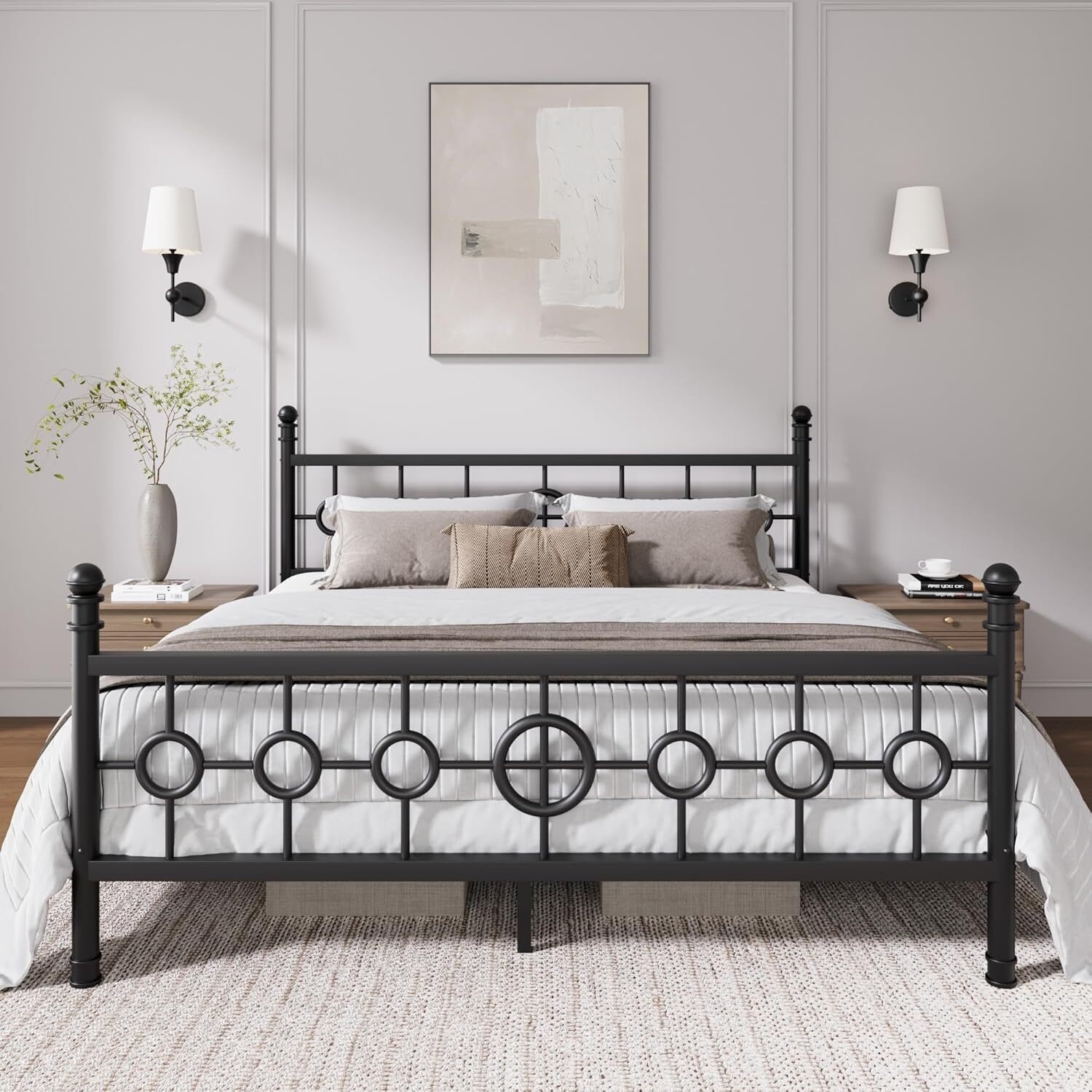 Metal Platform Bed Frame with Vintage Circular Headboard and Footboard