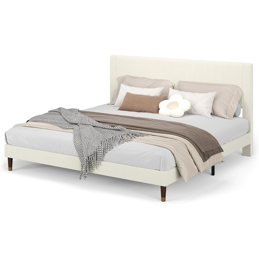 King Bed Frame Button Tufted Headboard Gray No Box Spring
