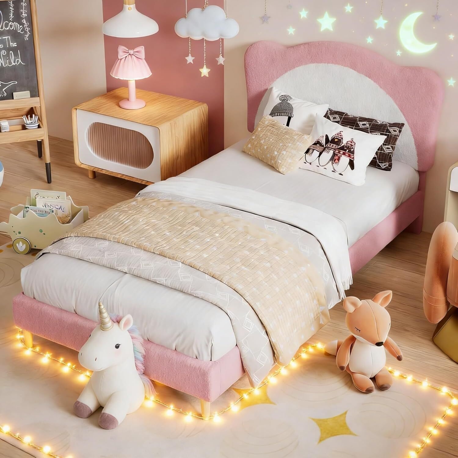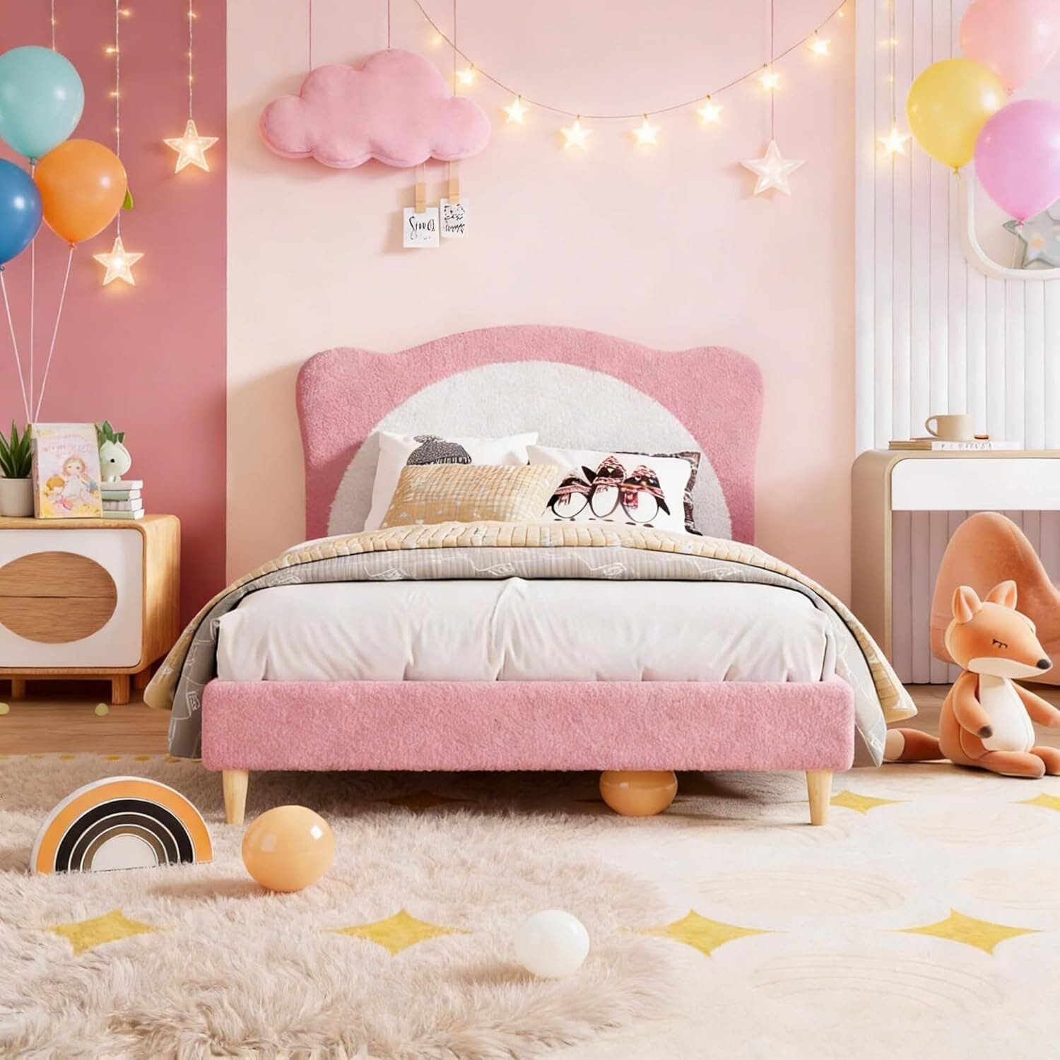 Velvet Panda Princess Upholstered Platform Bed Frame for Girls & Boys Room Decor