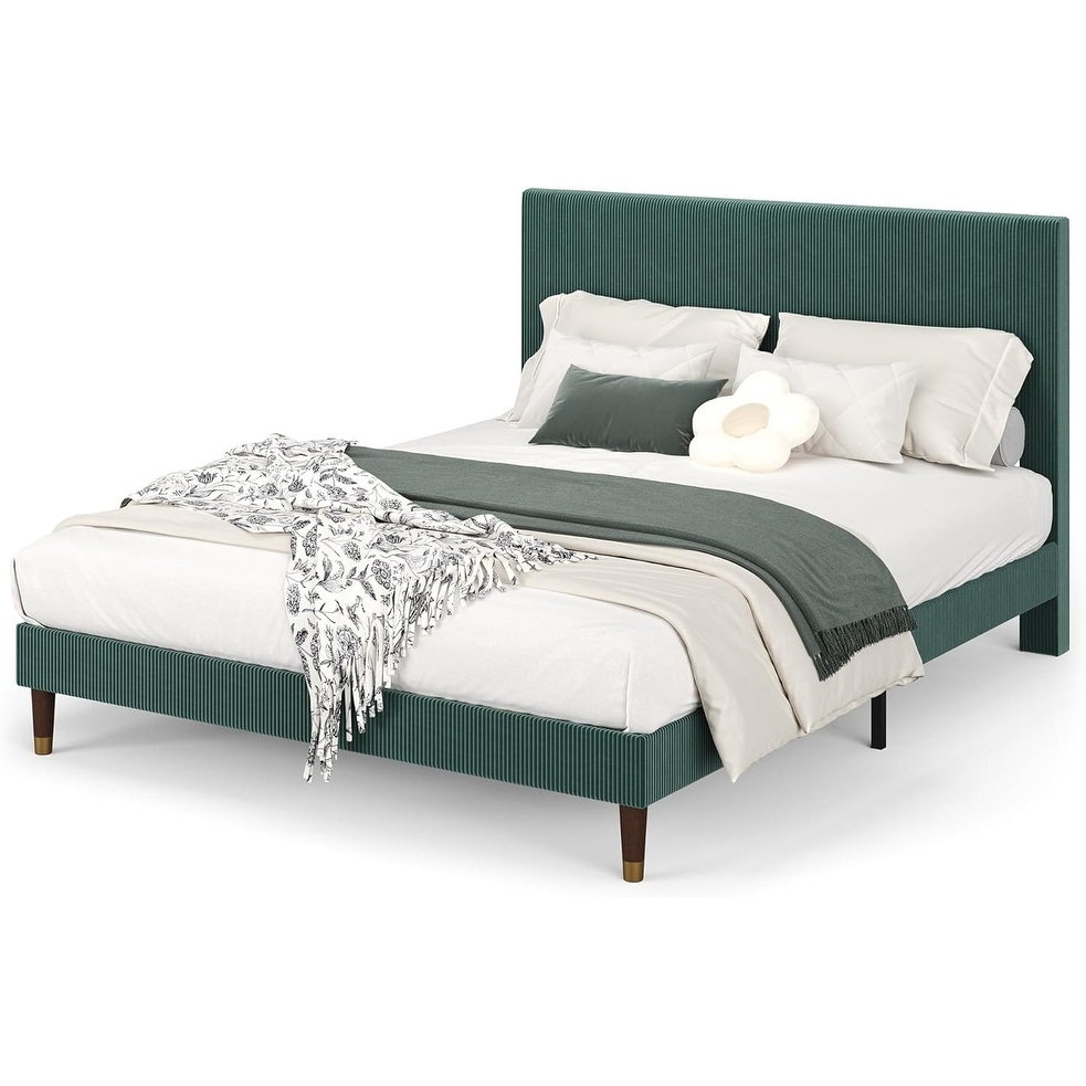 Queen Bed Frame Button Tufted Headboard White No Box Spring