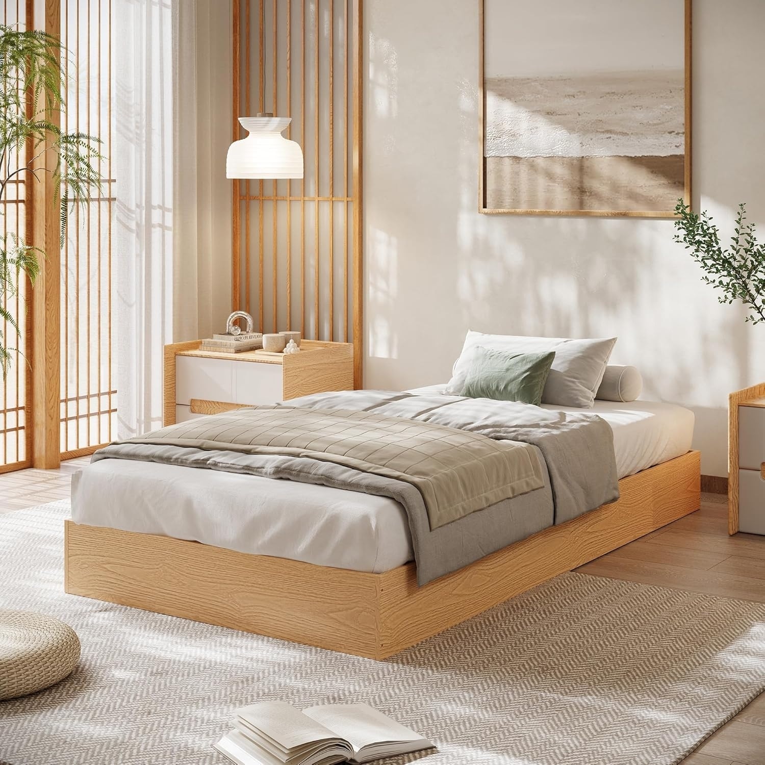 Garvee Twin Solid Wood Platform Bed Pine No Box Spring