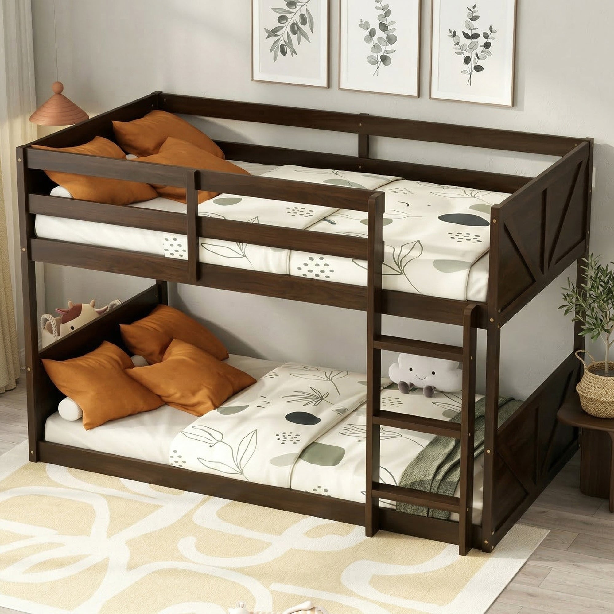Javlergo Twin Over Rubberwood Bunk Bed with Stairs and Safety Guardrails Space Saving Bunk Bed with Headboard Footboard